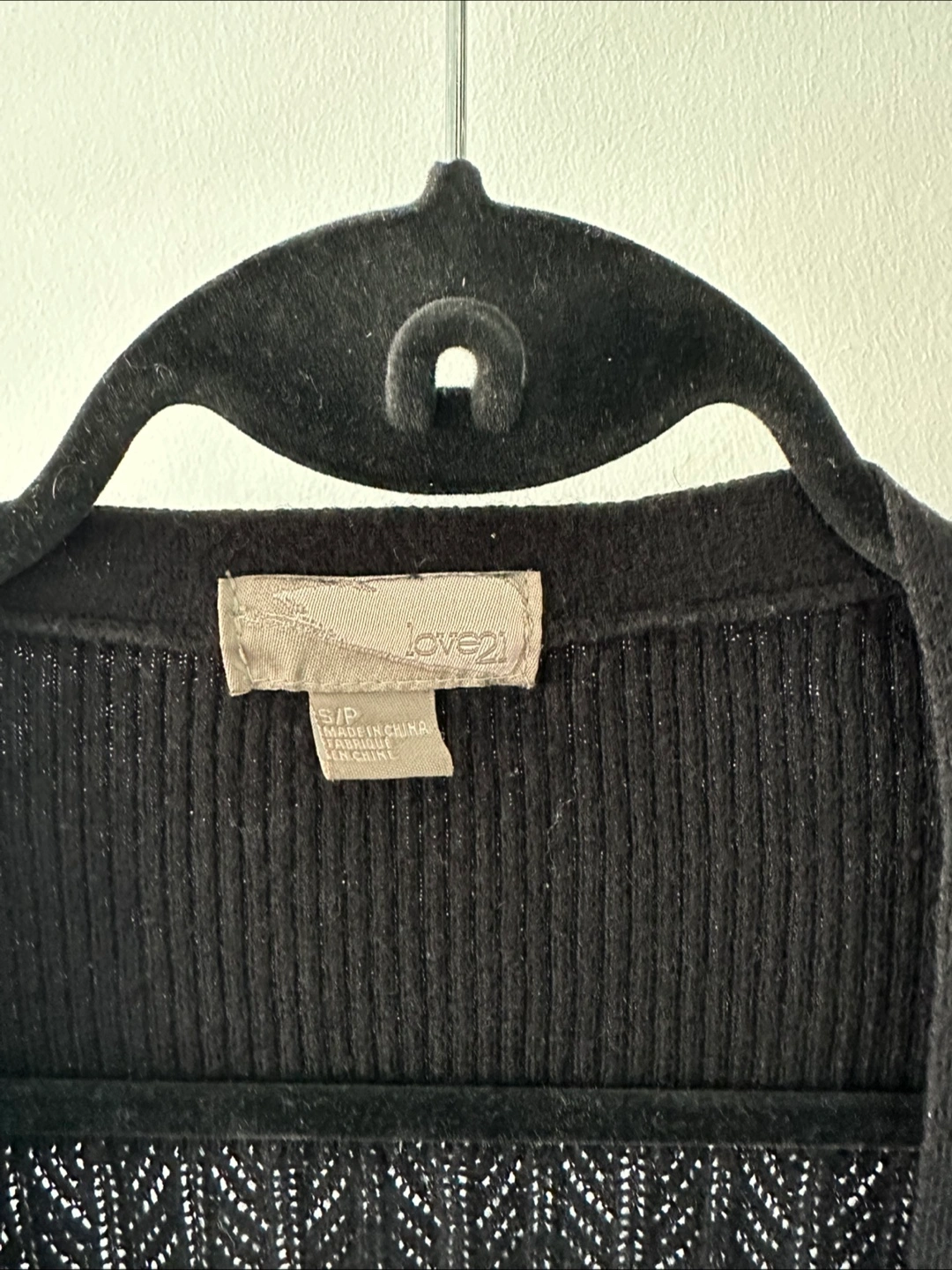 Selling a Love 21 black cardigan in size S/P! It's in great condition and ready for a new home. Perfect for layering or adding a touch of style to any outfit