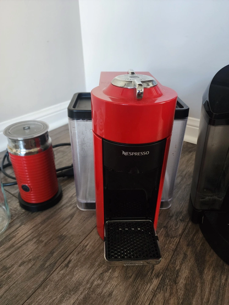 Selling a Nespresso VertuoLine coffee and Keurig maker. It's in great shape and ready to make your favourite drinks! Includes the Aeroccino milk frother, and clear glass pods container.