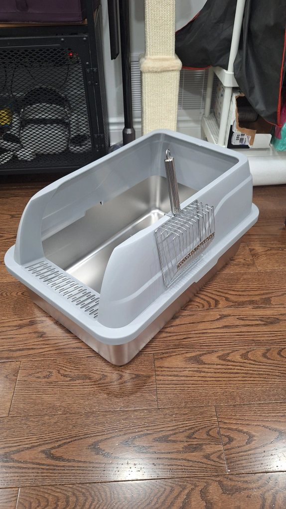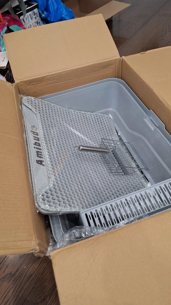Selling a brand new Amibud stainless steel litter box with lid! It includes a scoop and a litter mat. The litter box is made of stainless steel. Too big for my space
