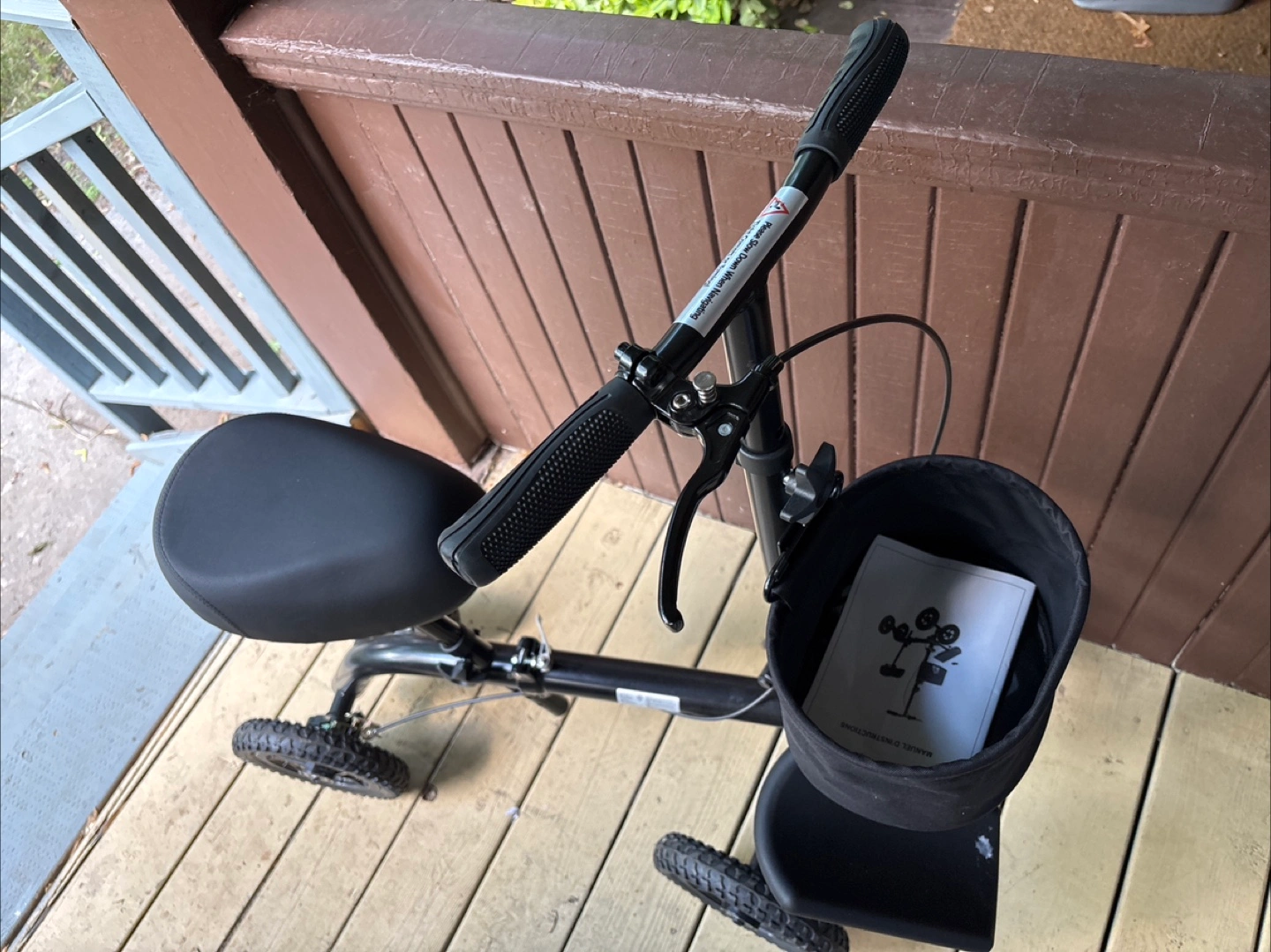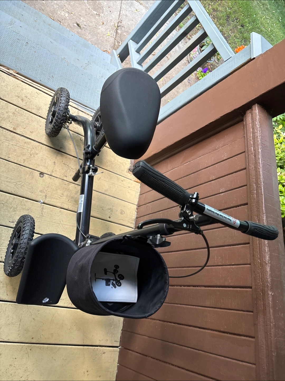 Selling a Vanerum knee walker in great condition! It's black and comes with a handy basket for carrying your essentials. Perfect for getting around while recovering from a foot or ankle injury. Includes the manual instructions!