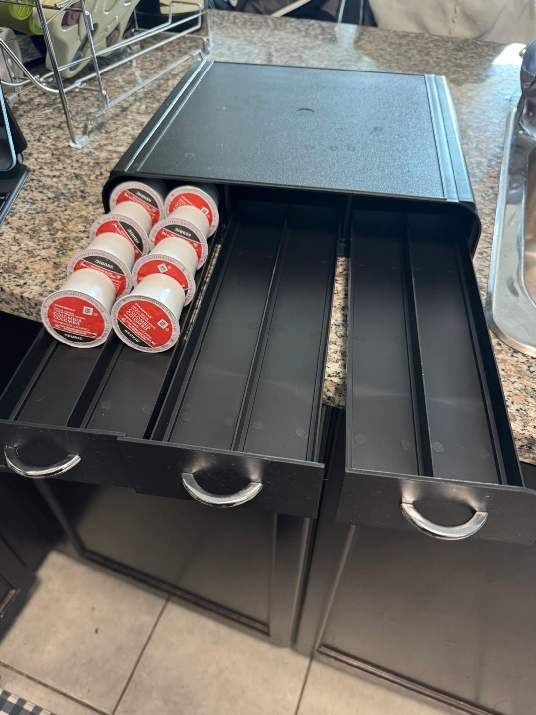 •Large Capacity - 3 Storage Drawers, Holds 36 keurig K-Cup/ Verismo/ Dolce Gusto/CBTL Single serve coffee pods
