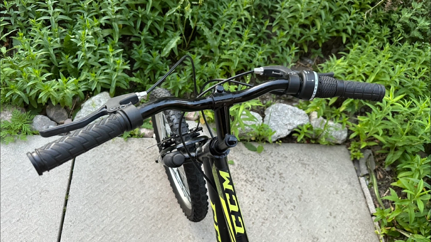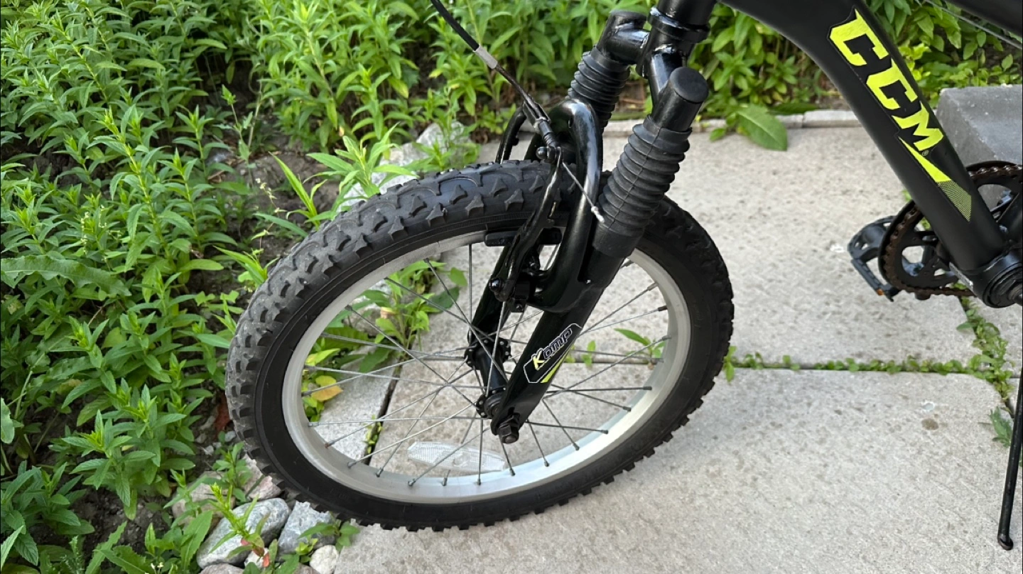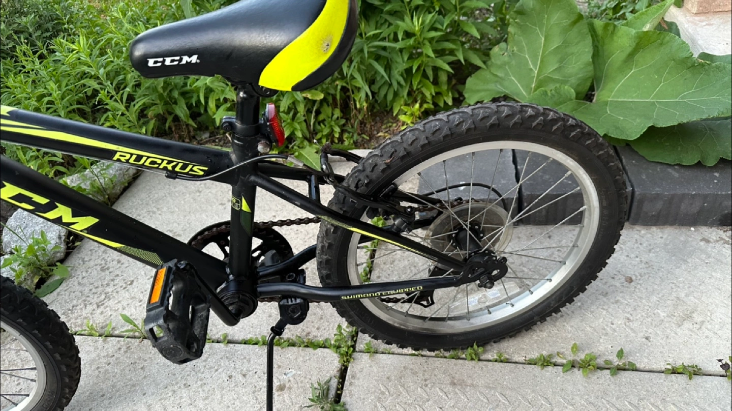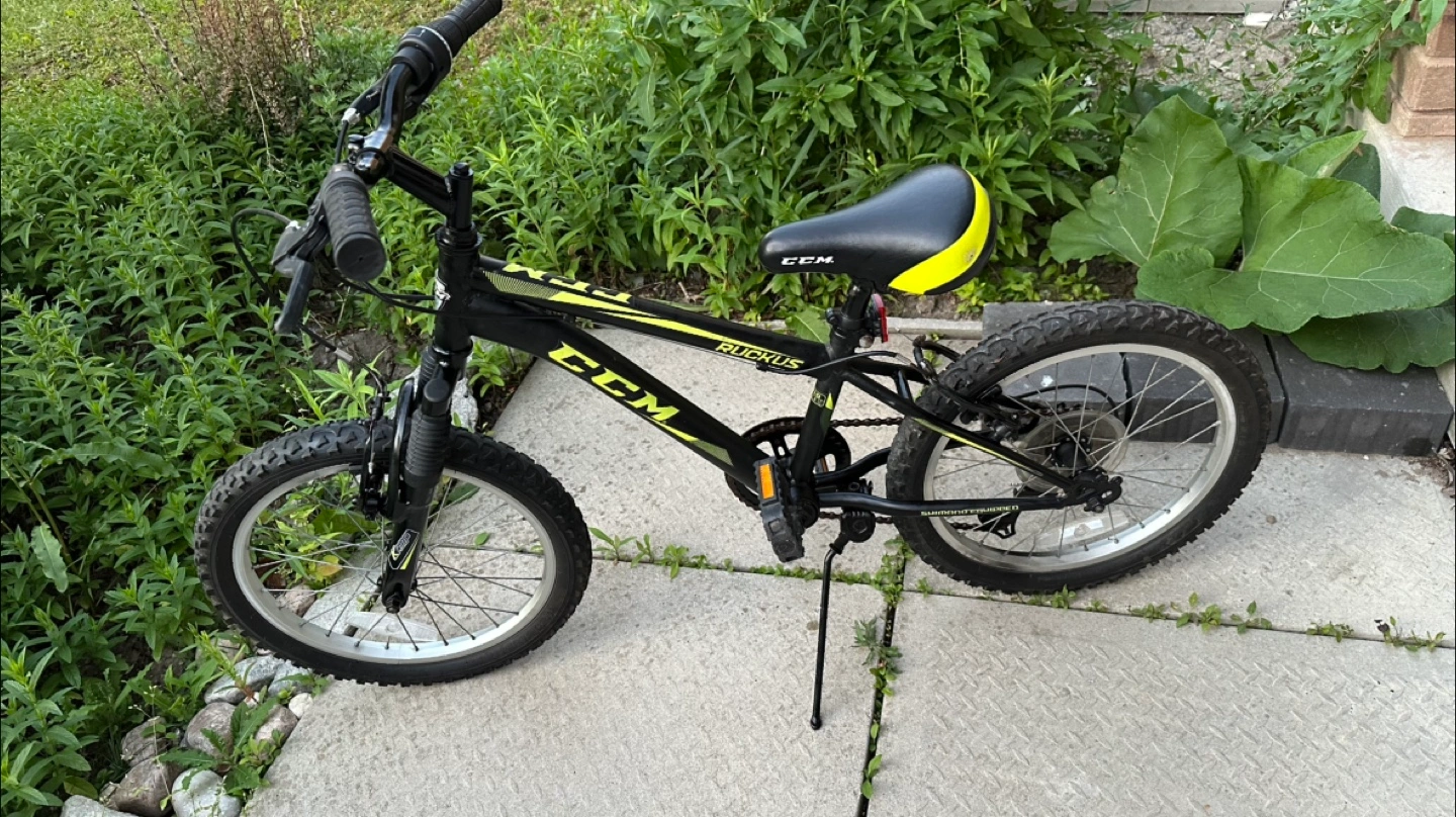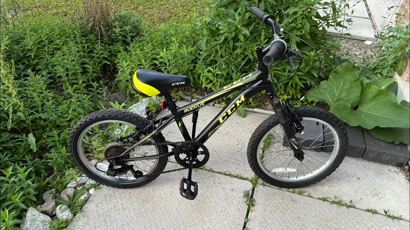 Selling a CCM Ruckus kids bike in black and yellow! It's in great shape and ready for a new rider. Perfect for kids learning to ride or upgrading to a bigger bike. The bike has a kickstand and a comfortable seat.