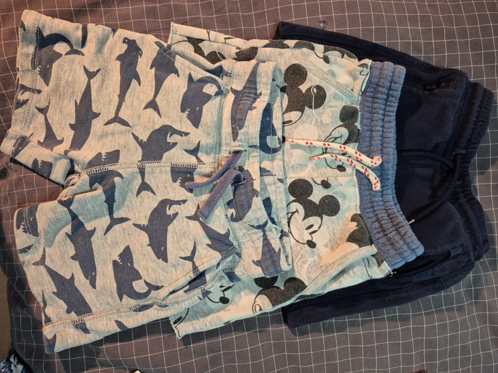 111Selling a bundle of boys' shorts! There's a pair with a fun shark print, another with Mickey Mouse, and a solid navy pair. All in good condition and ready for a new home. 2 pairs are Gap and the shark print is H&M. All size2.