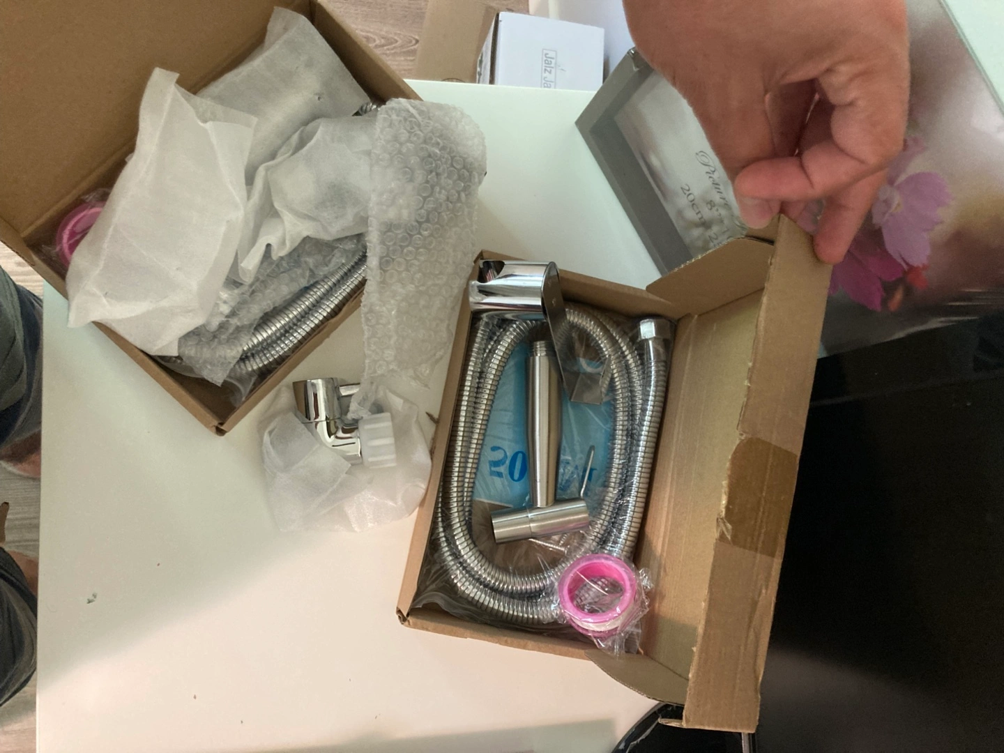 Selling a brand new bidet sprayer set in stainless steel! It includes all the necessary parts for installation, such as the hand sprayer head, bidet hose, and sprayer holder. The box is included, making it easy to transport and store.