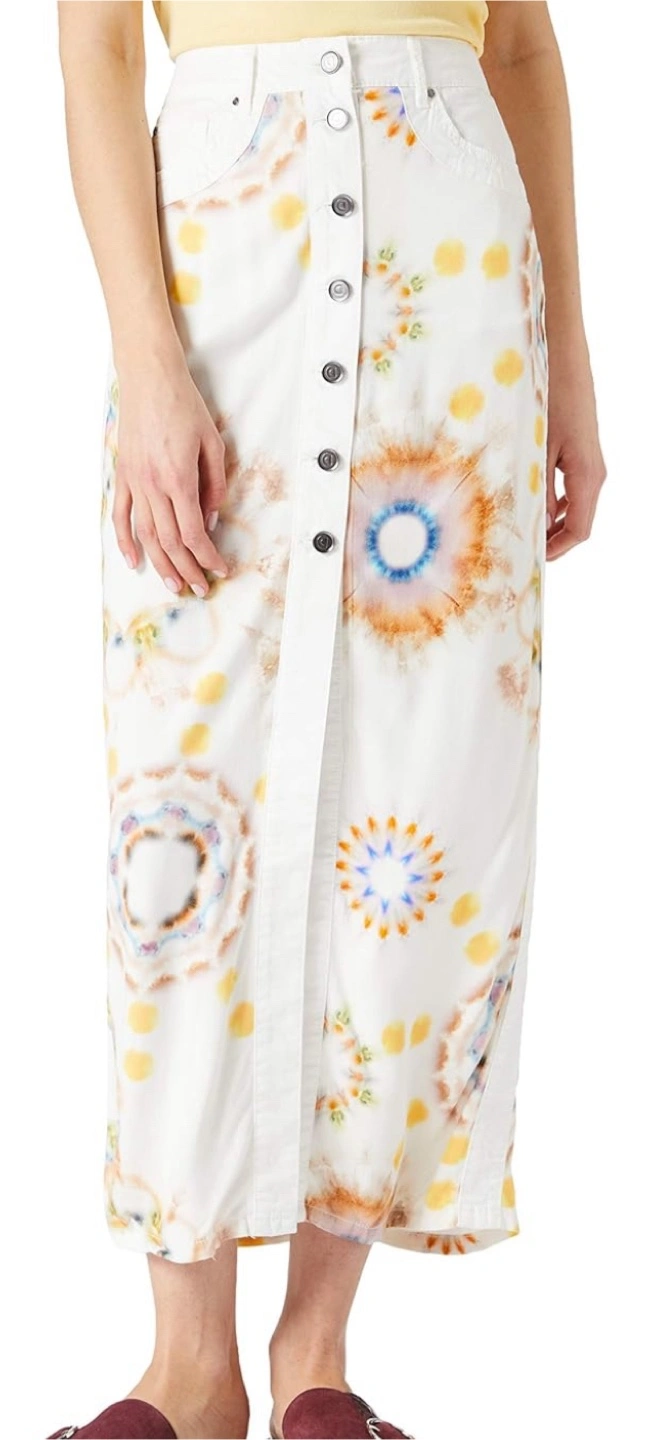 25This Desigual denim skirt features a unique floral design and a button-down front. It's perfect for adding a pop of colour to your wardrobe and creating a stylish, casual look. The skirt appears to be in great condition and ready for a new home! Pick up intersection Midland/Danforth
