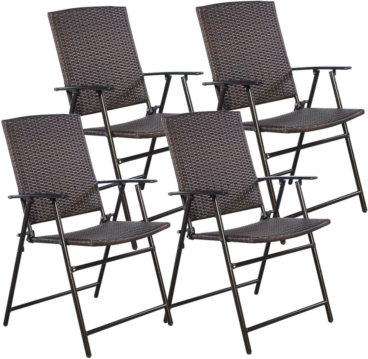 These barely used 4 brown portable wicker foldable chairs can be used for patio, garden, lawn, deck, apartment balcony, poolside, camping, fishing or indoors. These ergonomic patio chairs with arm and footrest are made of durable rattan with a steel frame. It has extra wide seats and a slight incline high back for relaxing. Selling for $300.00 new on Amazon.