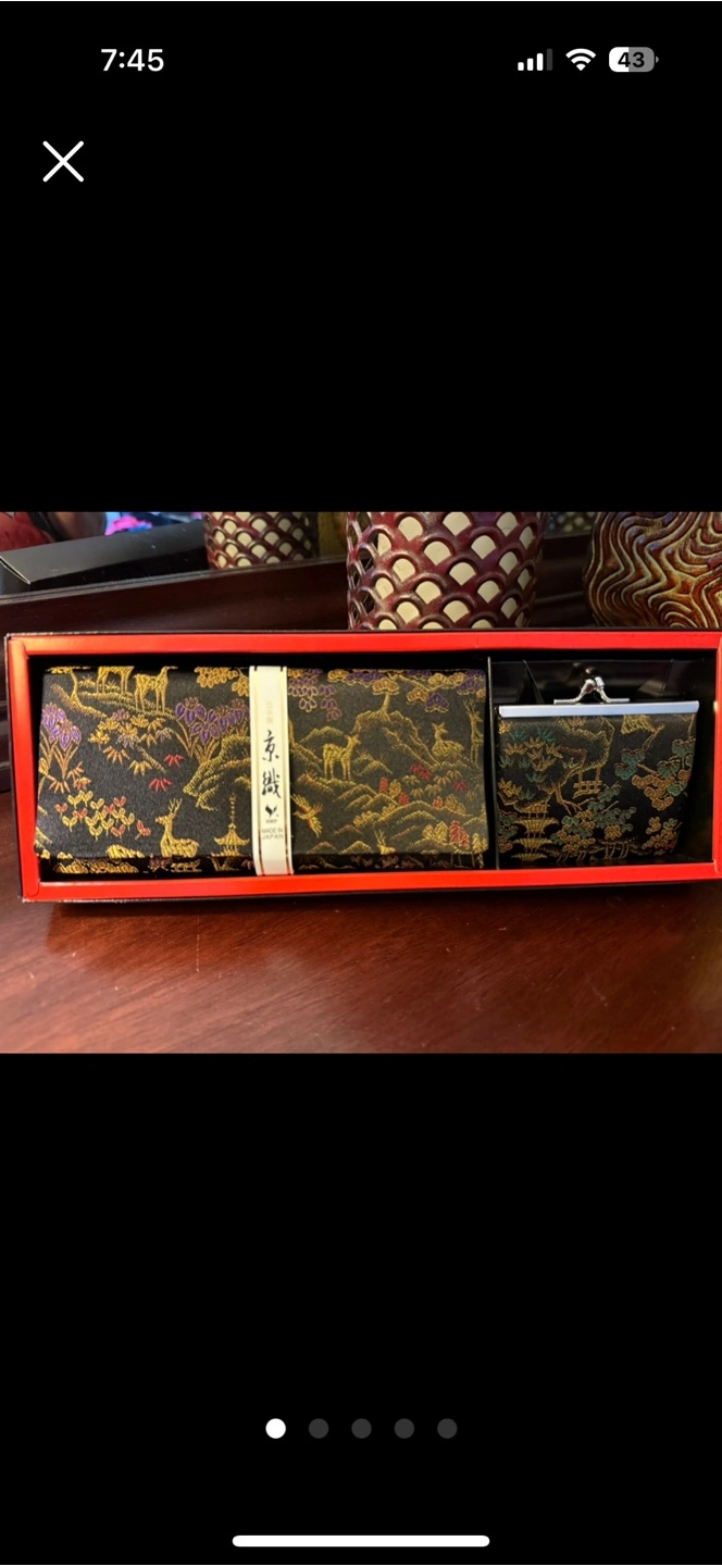Selling a lovely Japanese coin purse and wallet set. It comes in its original box and features beautiful traditional designs. Perfect for adding a touch of elegance to your accessories