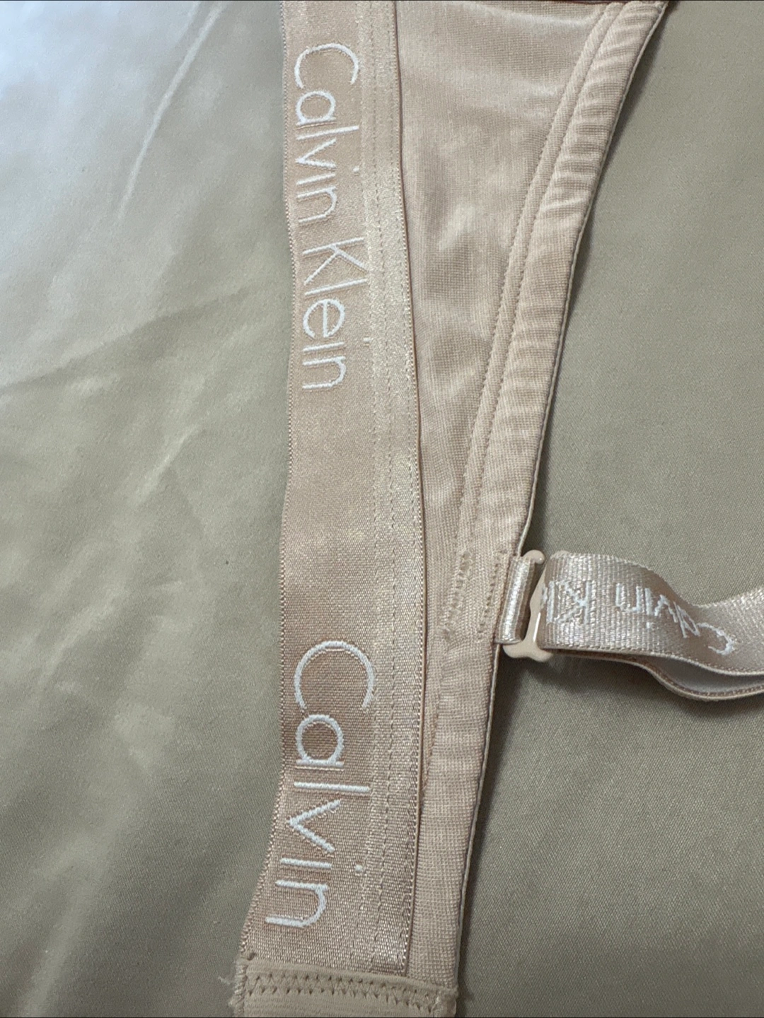 Selling a Calvin Klein bra in a lovely beige colour. It's in great condition and ready for a new home! Perfect for everyday wear and provides great support.