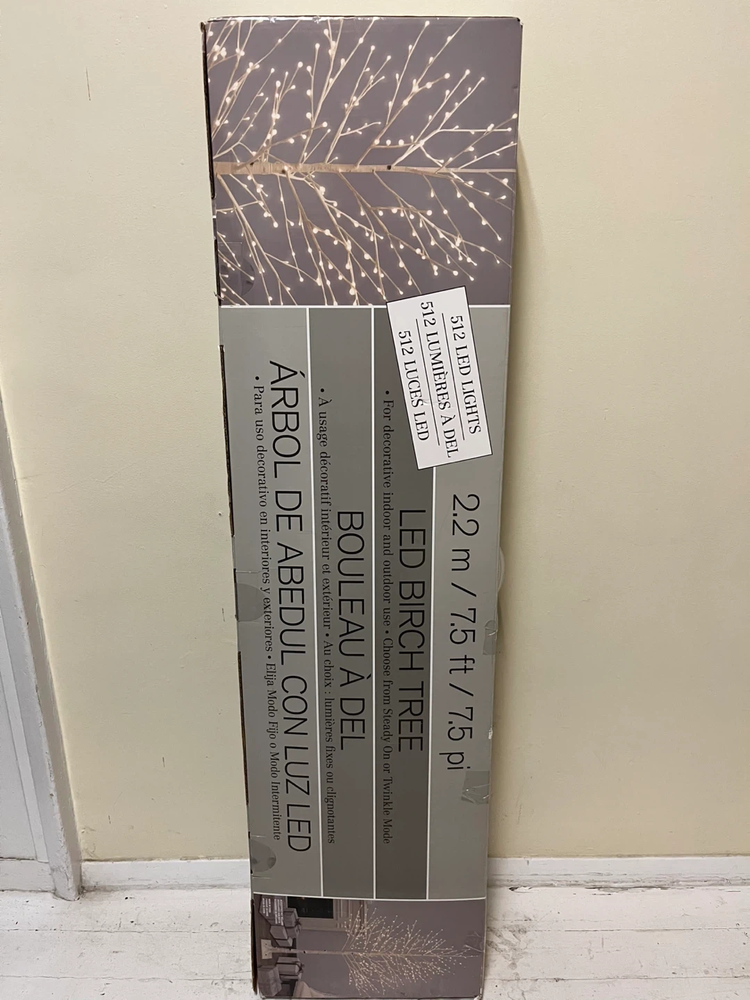 This LED birch tree is perfect for adding a touch of warmth to any room! It's 7.5 ft tall and can be used for both indoor and outdoor decoration. Only used once.