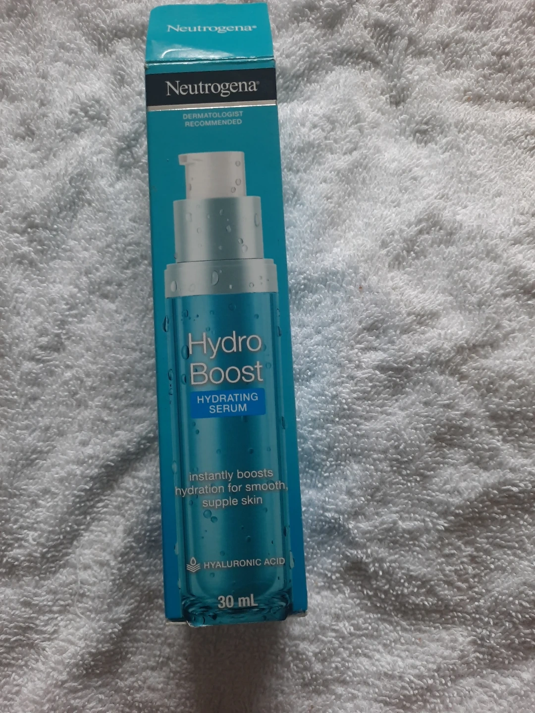 This is Neutrogena Hydro Boost Hydrating Serum. It instantly boosts hydration for smooth, supple skin. Contains Hyaluronic Acid. 30 mL bottle.