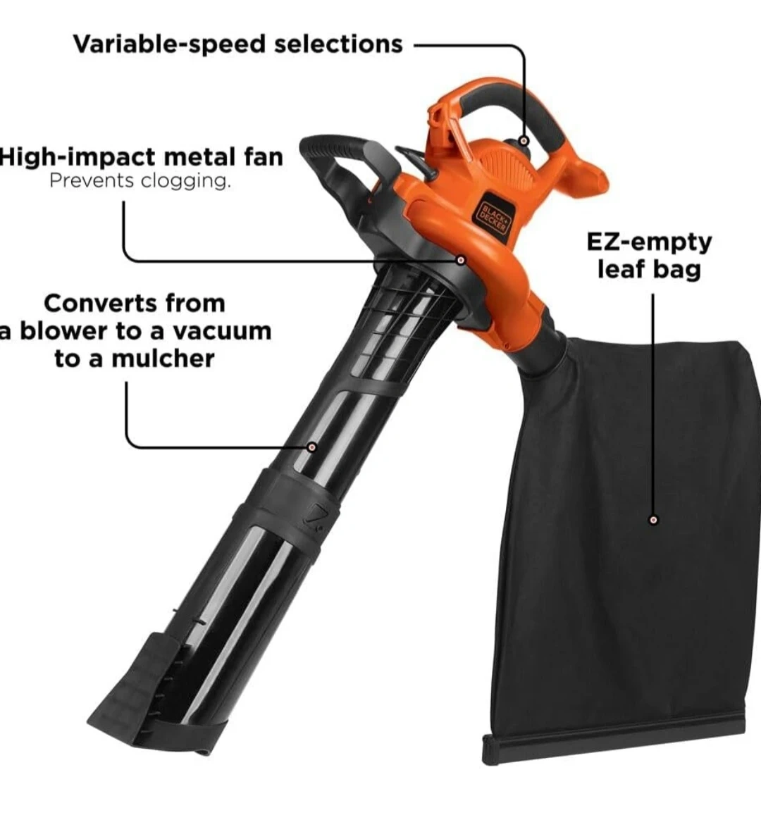 BLACK+DECKER 3-in-1 Electric Leaf Blower, Leaf Vacuum/Mulcher