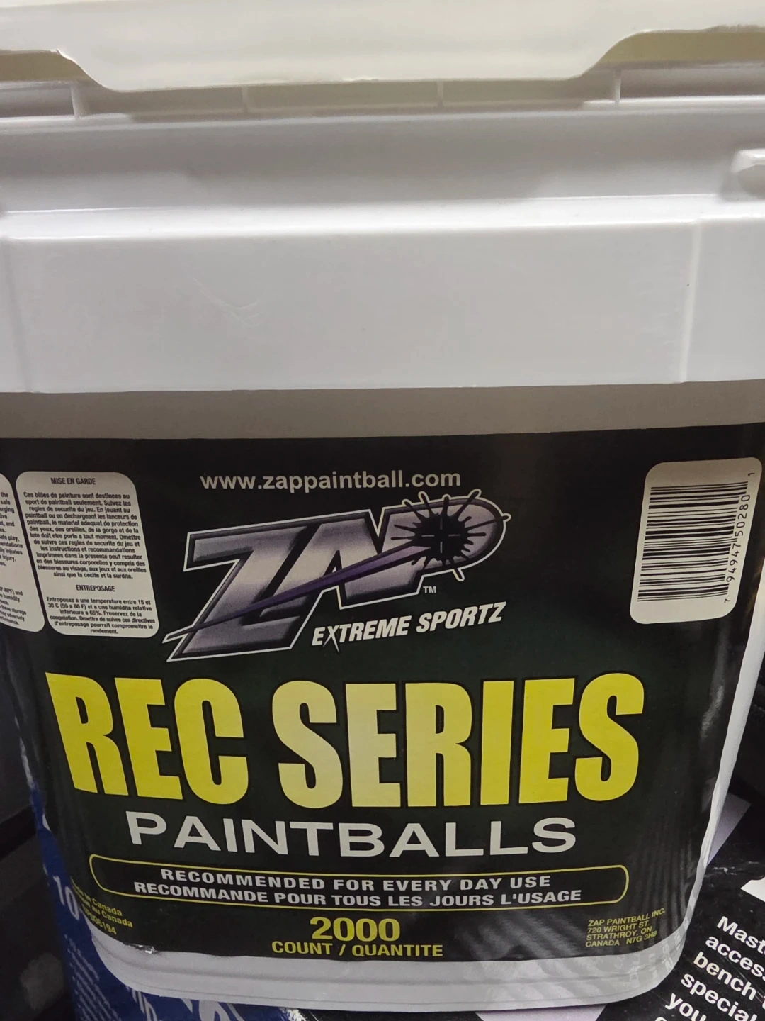 ZAP Extreme Sportz REC SERIES paintballs are recommended for everyday use. This container holds 2000 count of paintballs. They're blue in colour and come in a large bucket. In-between 500-1000 Paintball remaining