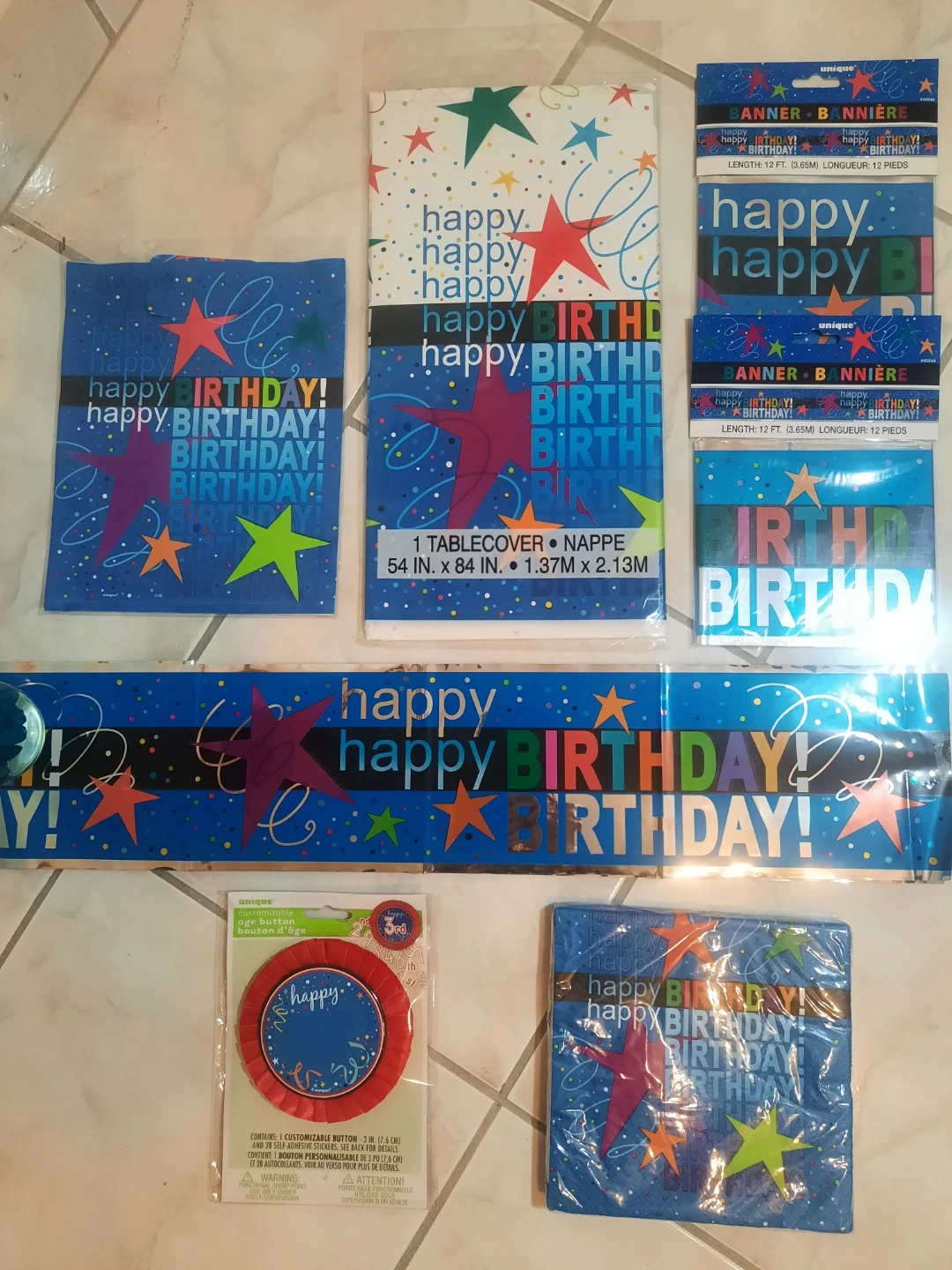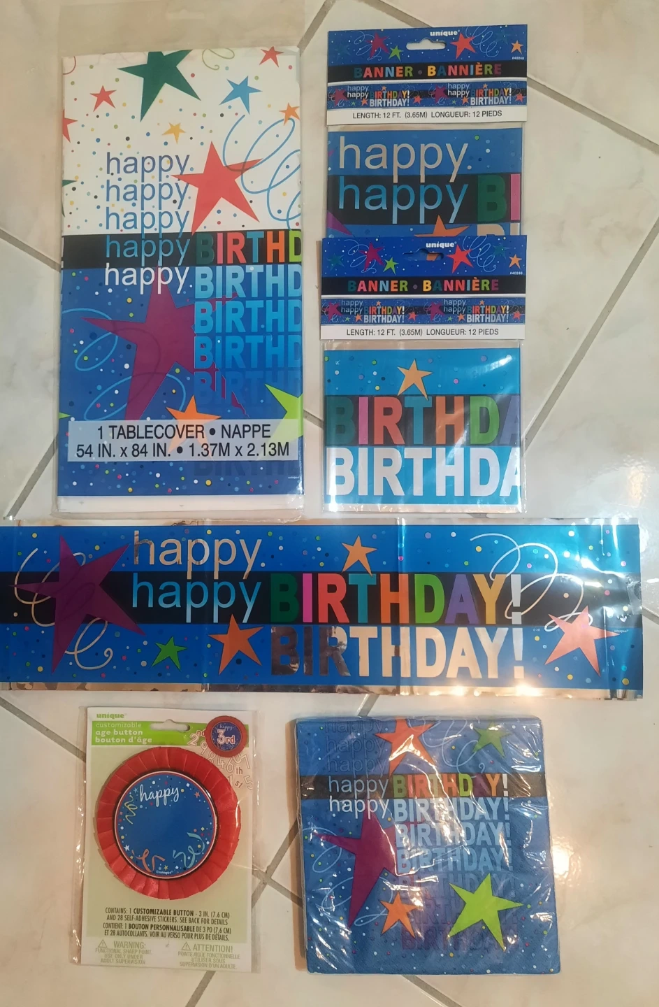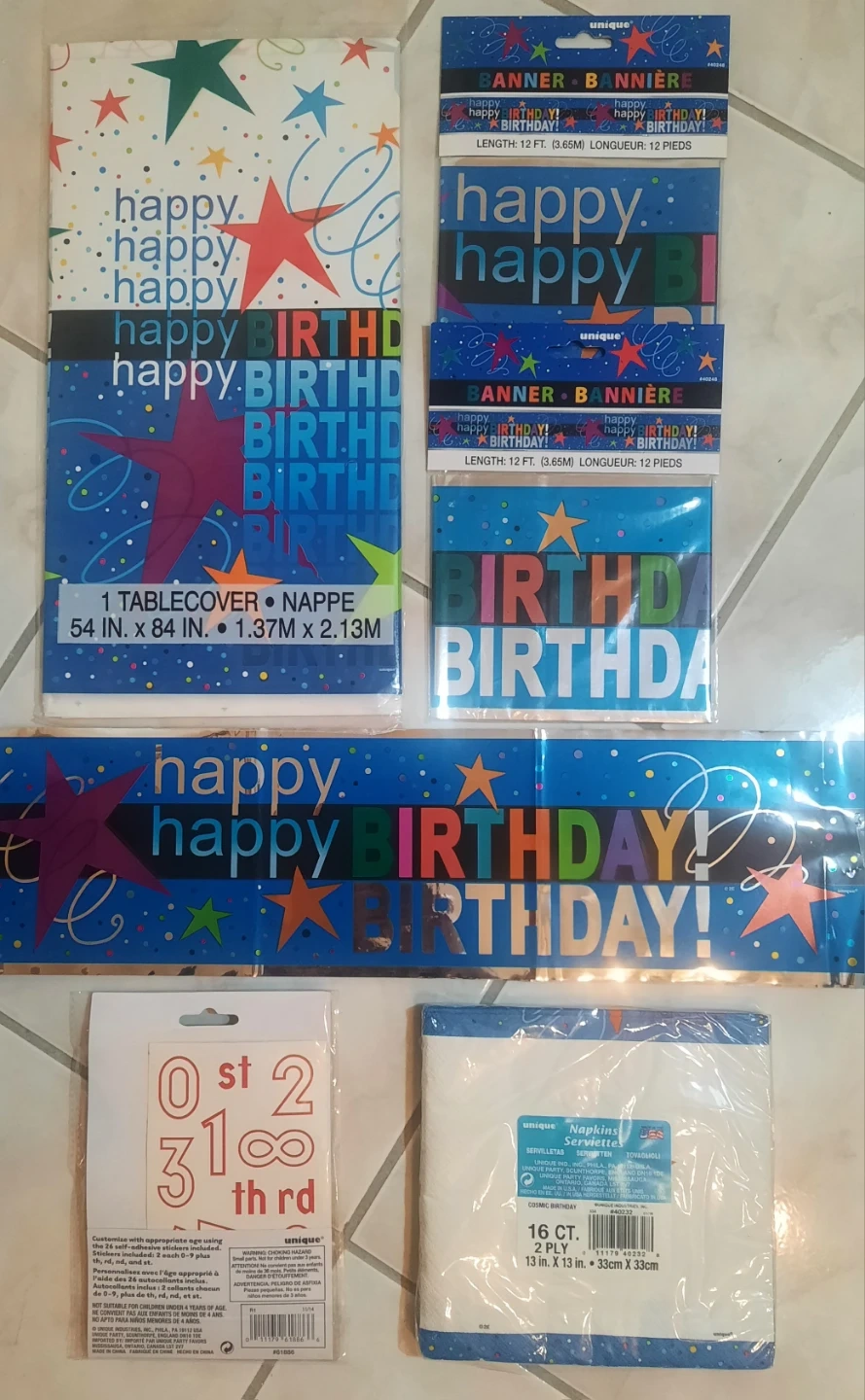 This is a bundle of 'Happy Birthday' themed party supplies.