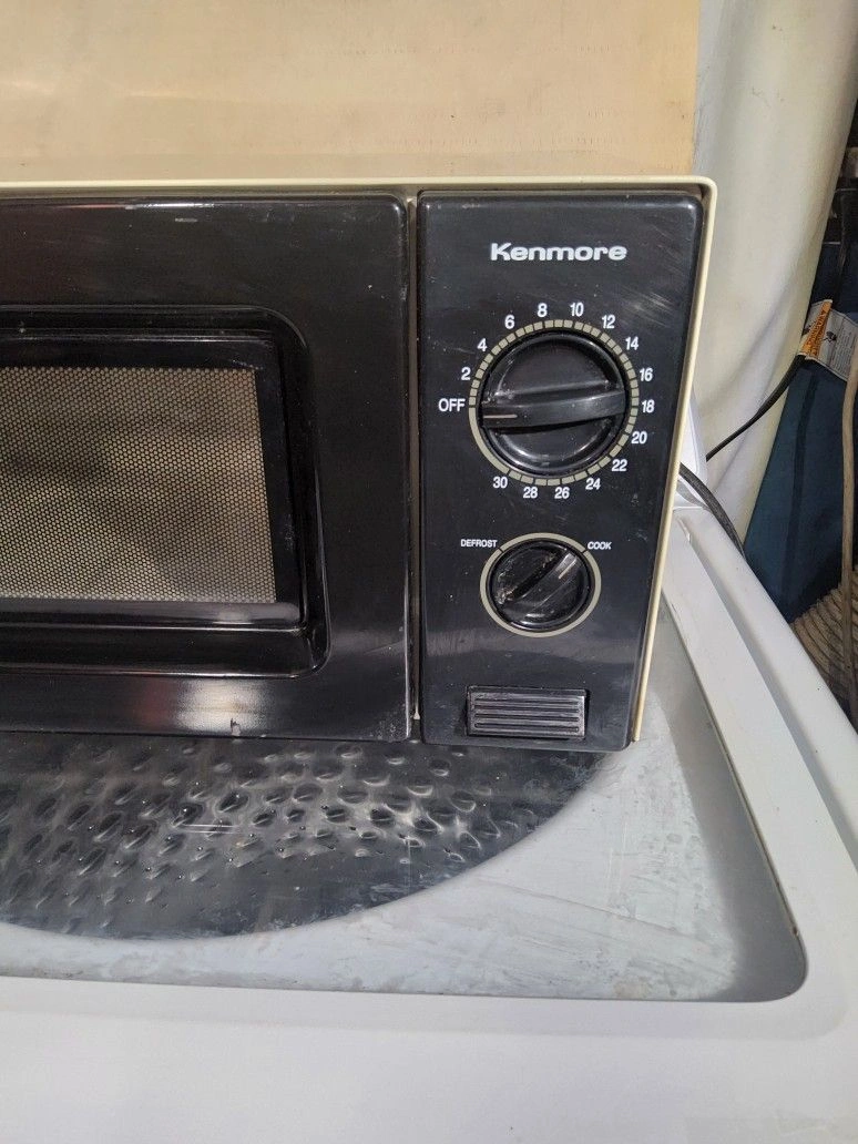 Nice working Kenmore microwave, name brand, in great shape. This is a vintage piece from storage, appears unused and will last for years. Originally sold for $150. 7 DAY WARRANTY INCLUDED. Can show operating at time of purchase if asked. The essential appliance for any busy kitchen, this microwave features six pre-set cooking options for delicious meals in seconds. It delivers ten different power levels for precise heating/defrosting. With an easy-to-read digital LED display clock and timer, it makes it easy to serve your family their piping hot favorites.