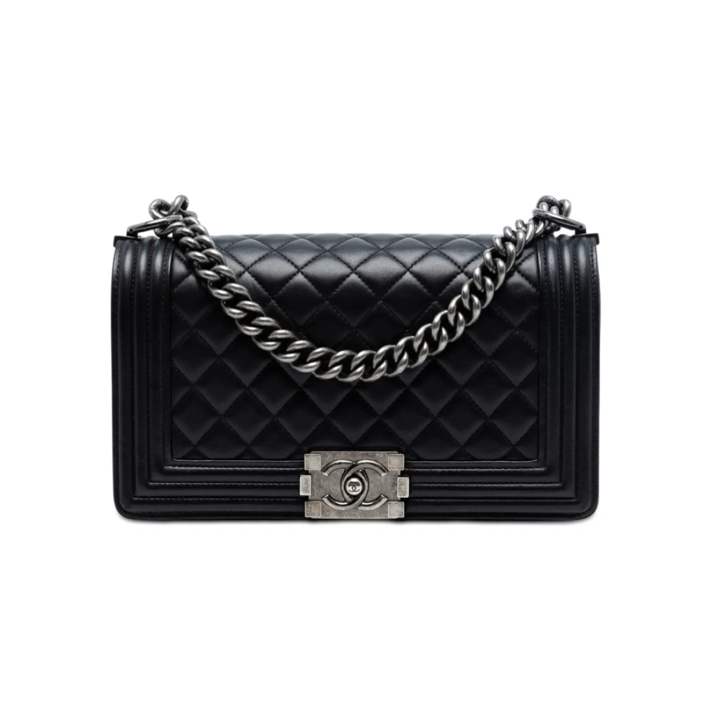 Chanel boy old medium Black Lambskin Leather Classic Flap Bag