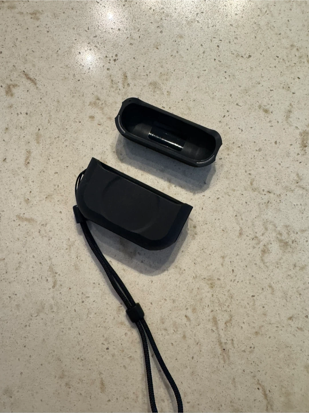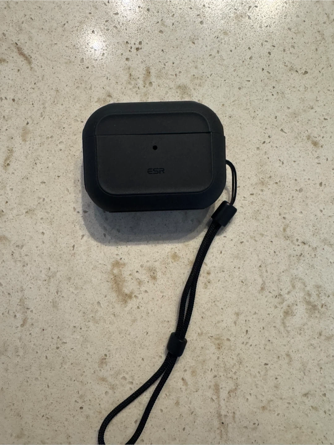 This is a black silicone case for AirPods Pro from ESR. It includes a detachable lanyard for easy carrying. The case is made of silicone and has a protective design.