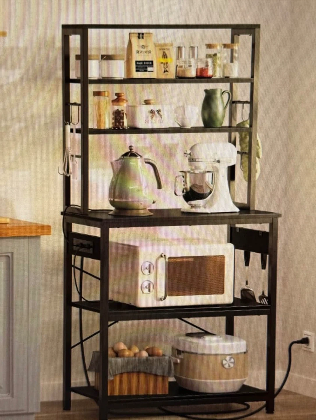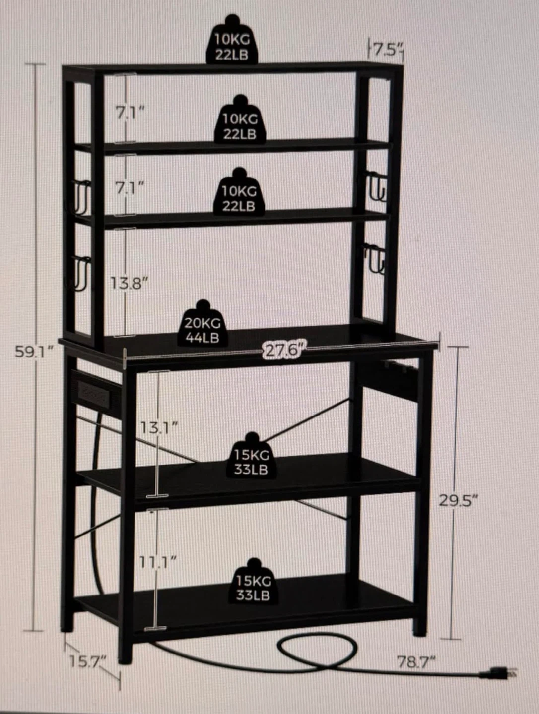 This kitchen coffee bar offers ample storage across shelves It features 4 AC outlets with a 6.5-foot power cord and UL certification. The sturdy design supports up to 22LB on the top shelves and 33LB on the bottom shelves. Its dimensions are 78.7" H x 15.7" W x 59.1" D. Pick up on the west end . Aldergrove area . 178 st and 80 ave nw