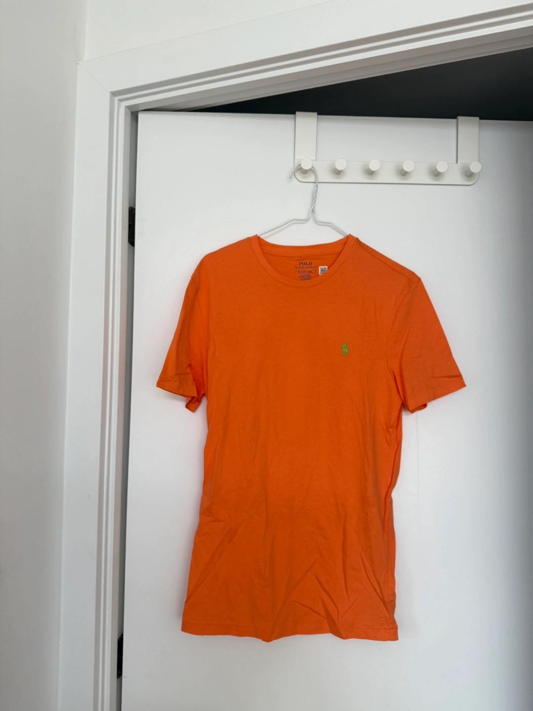 Selling a Polo Ralph Lauren t-shirt in size small! The shirt is a vibrant orange colour and in great condition. It's a classic, comfy tee, perfect for everyday wear. Originally $70 Selling at $20 Cash only Pick up only toronto downtown