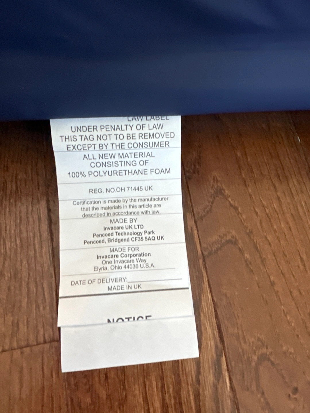Selling an Invacare Softform Premier mattress. it's made of 100% polyurethane foam. The date of manufacture is APR 18 2024. Its new
