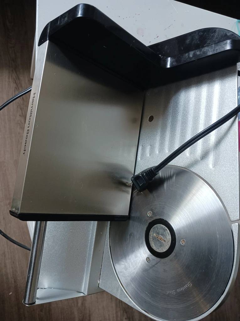 1000+Selling a Hamilton Beach food slicer. It features a stainless steel blade and is perfect for slicing meats and cheeses at home. It's in good working condition and ready to use!