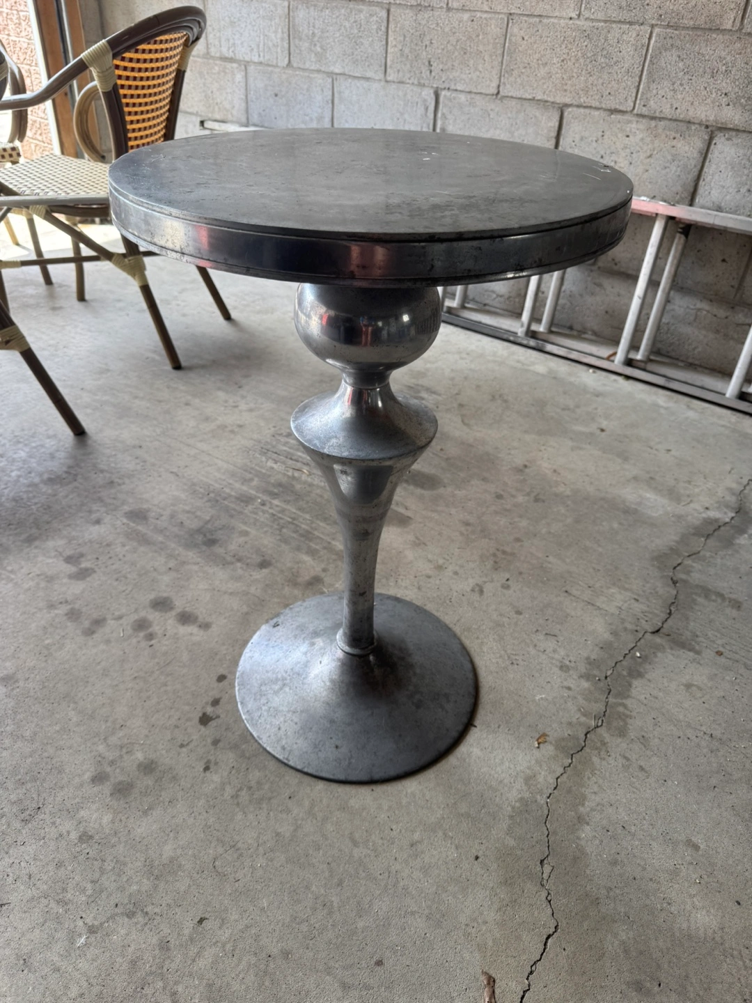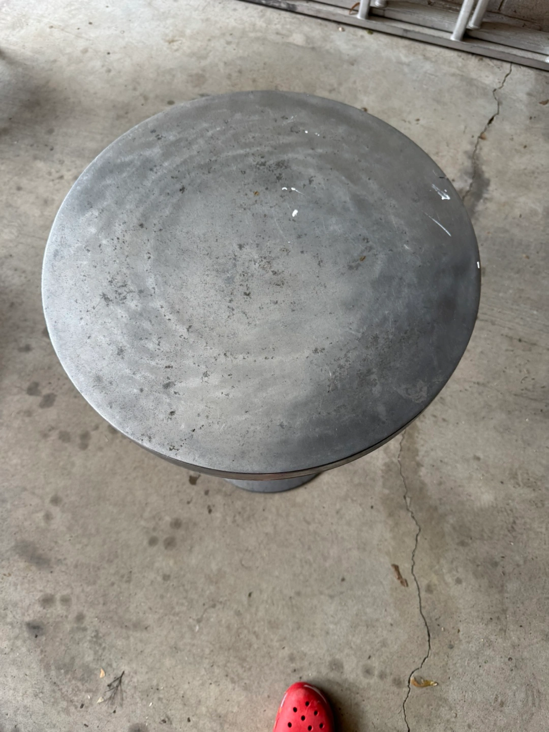 Selling a unique round metal accent table! It has a sleek, industrial look that would fit well in many spaces. It's sturdy and in good condition, perfect for adding a touch of modern design to your home, garden or balcony
