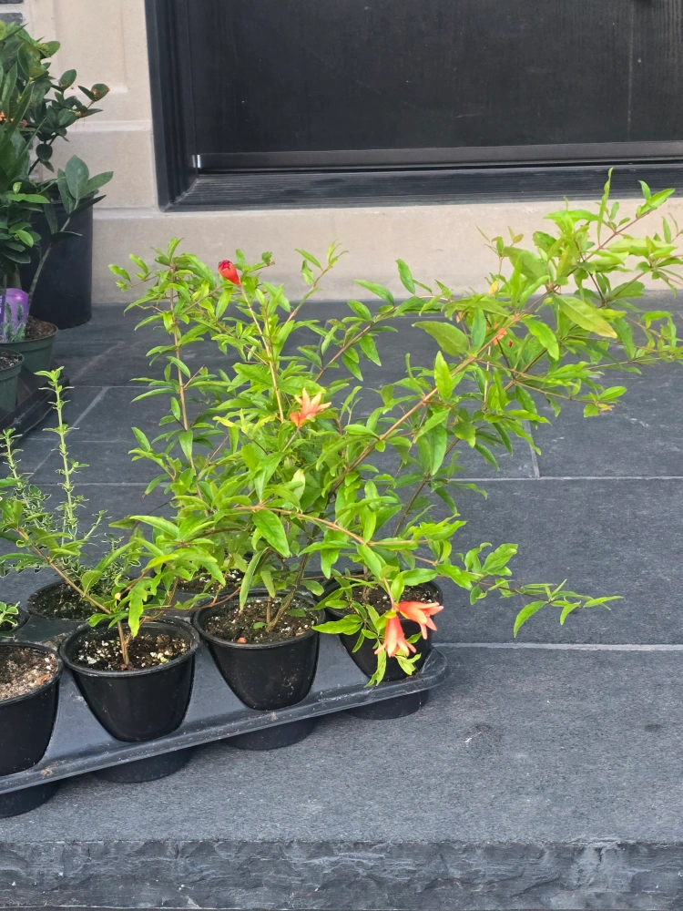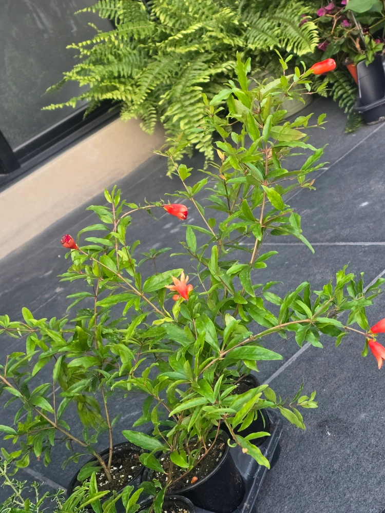 Selling a healthy pomegranate plant in a pot! It's got vibrant green leaves and beautiful red flowers, ready to add a touch of colour to your space. Perfect for a balcony or garden