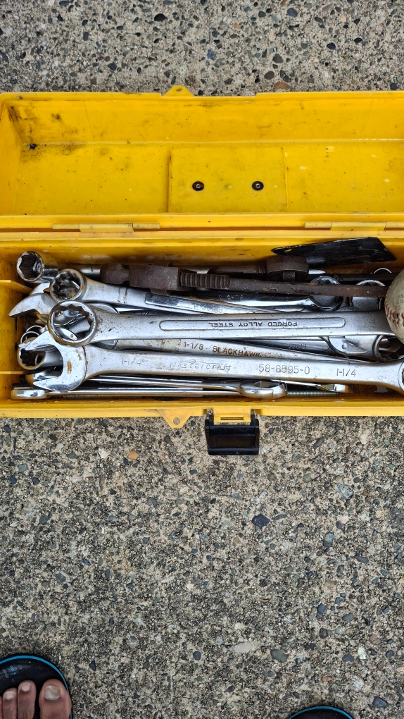 171I have a toolbox filled with a variety of wrenches. Brands include Mastercraft and Blackhawk. The wrenches are in a yellow toolbox.