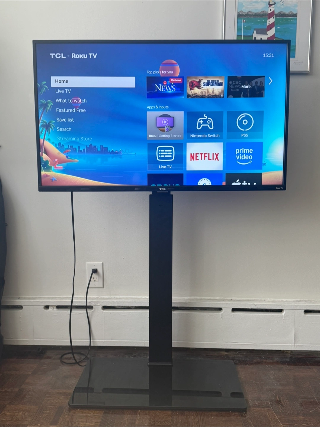TCL 43" Roku 4K Smart TV and floating TV stand