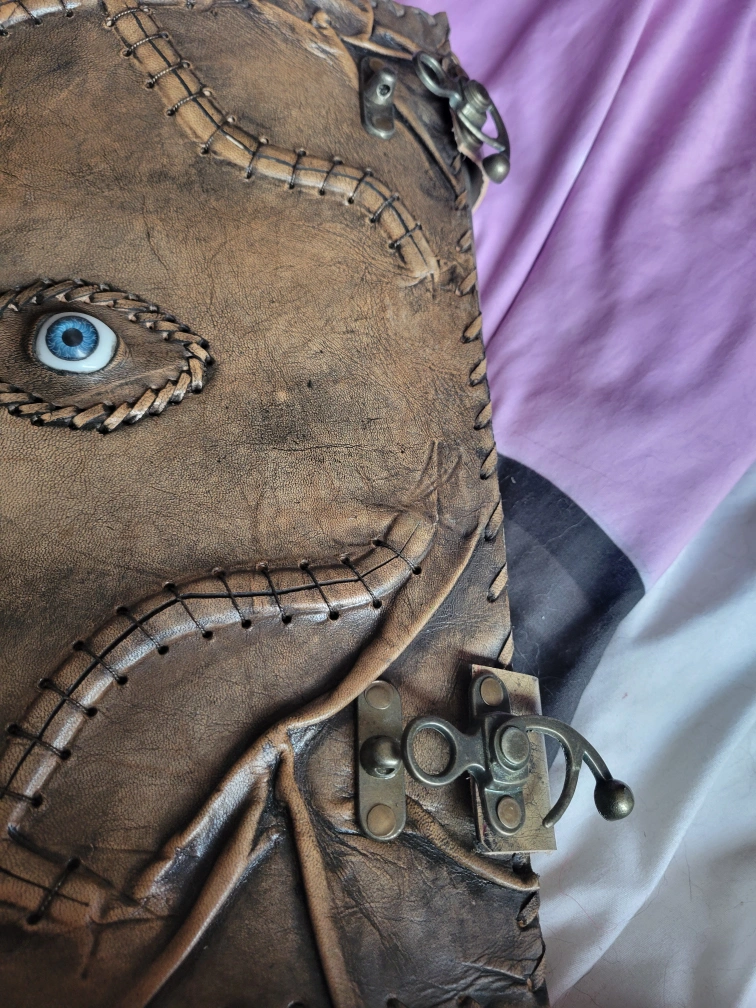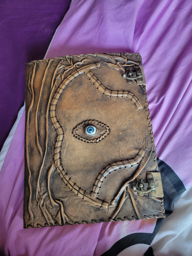 handmade hocus pocus book. tea stained pages with leather cover and metal locks. this is the biggest project i've made and has taken a couple weeks to complete with breaks. $375 or your best offer.