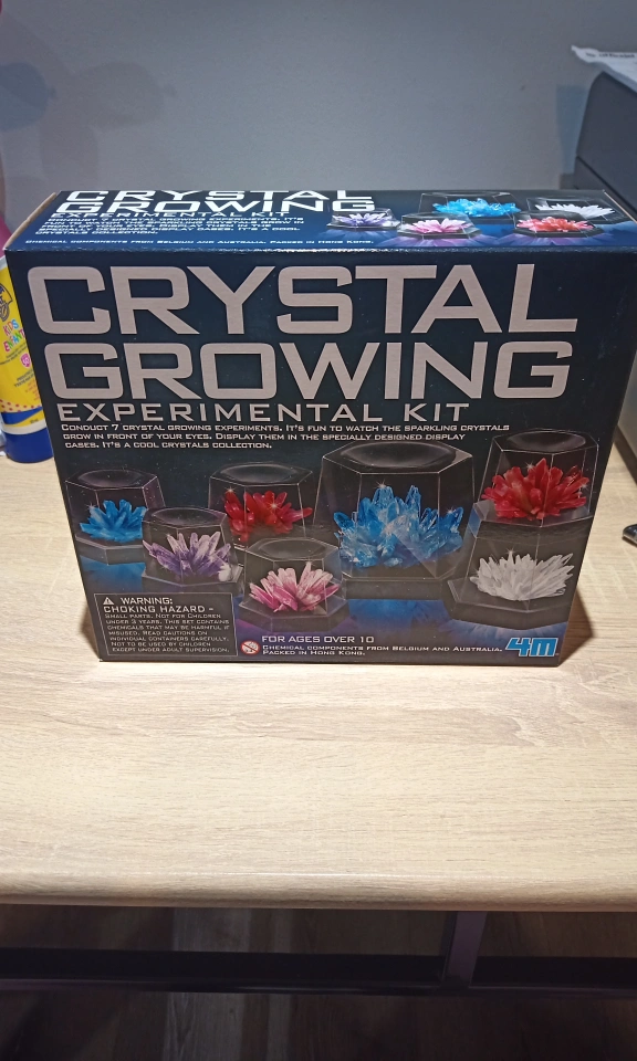 Brand new, never been opened, Crystal Growing Experimental Kit! It's a fun way to watch sparkling crystals grow in uniquely designed cases. The kit includes everything you need to conduct 7 crystal growing experiments. For ages 10+