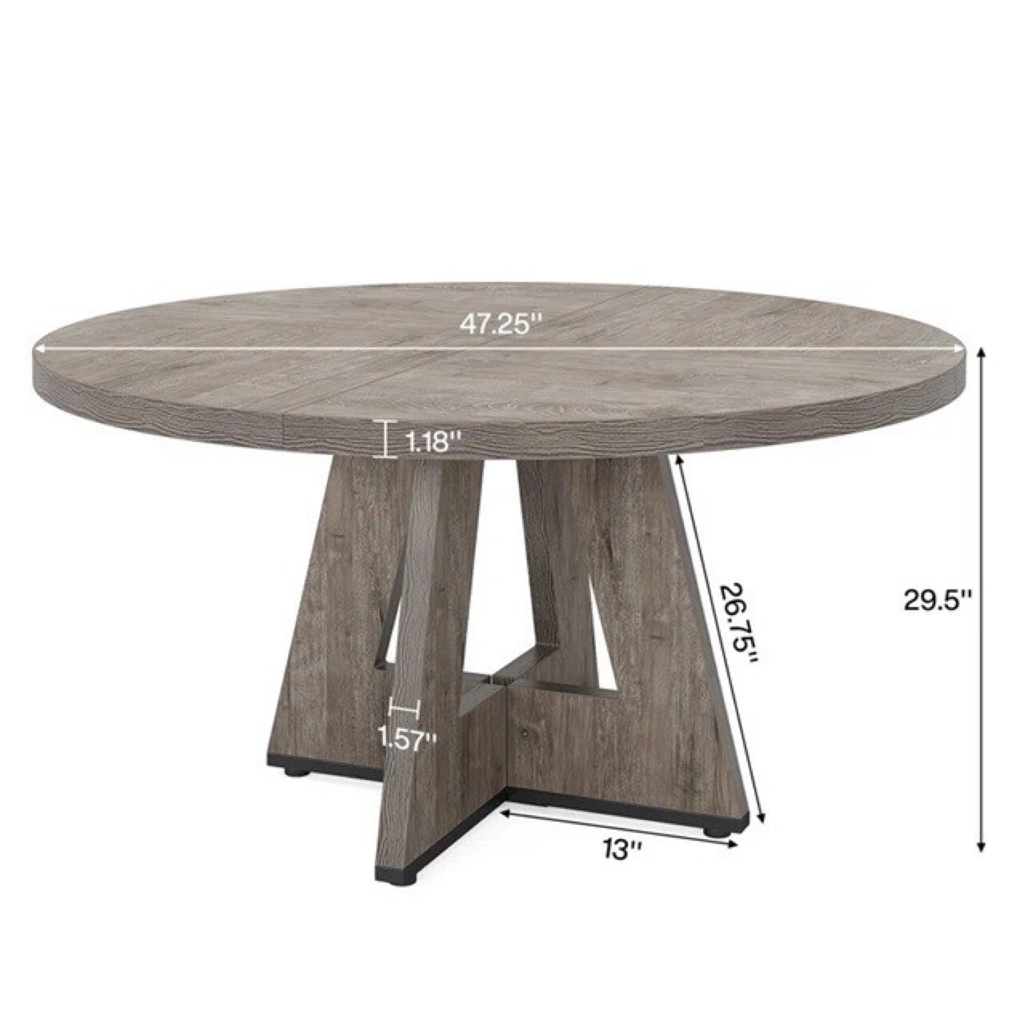 Selling a round dining table in great condition! The table has a diameter of 47.25 inches and a height of 29.5 inches. The base is 13 inches wide, giving it a sturdy and stylish look. Perfect for a smaller dining space!