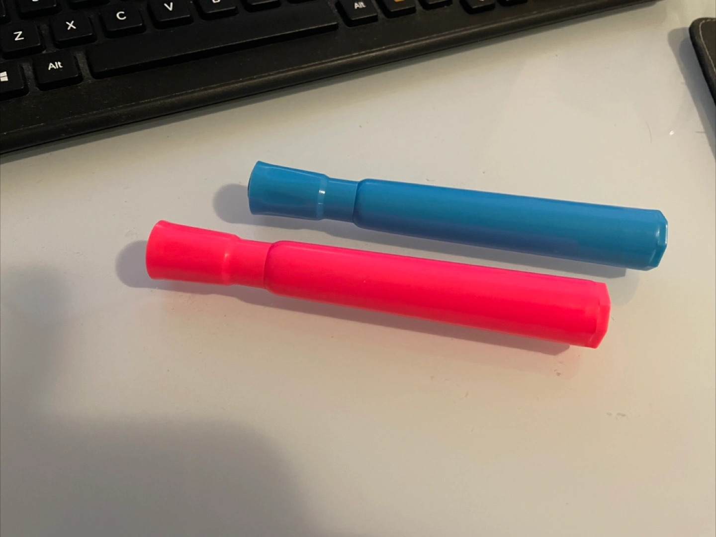 A pink and a blue highlighter. They're in good condition and ready for your next art project!