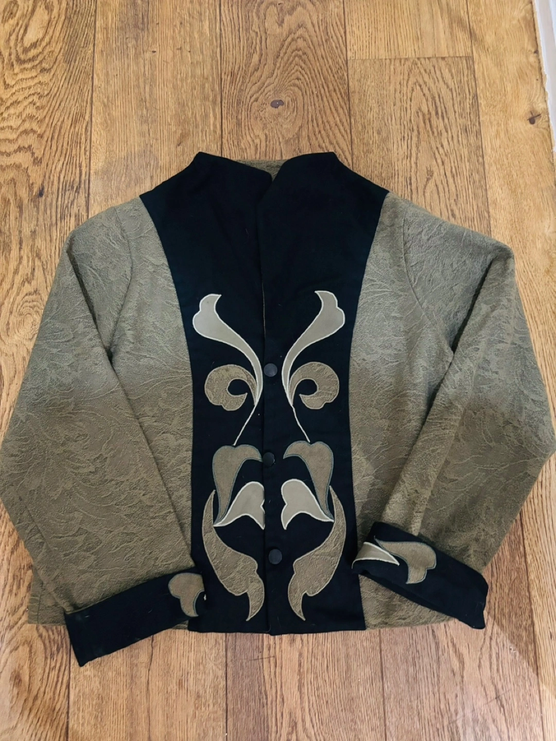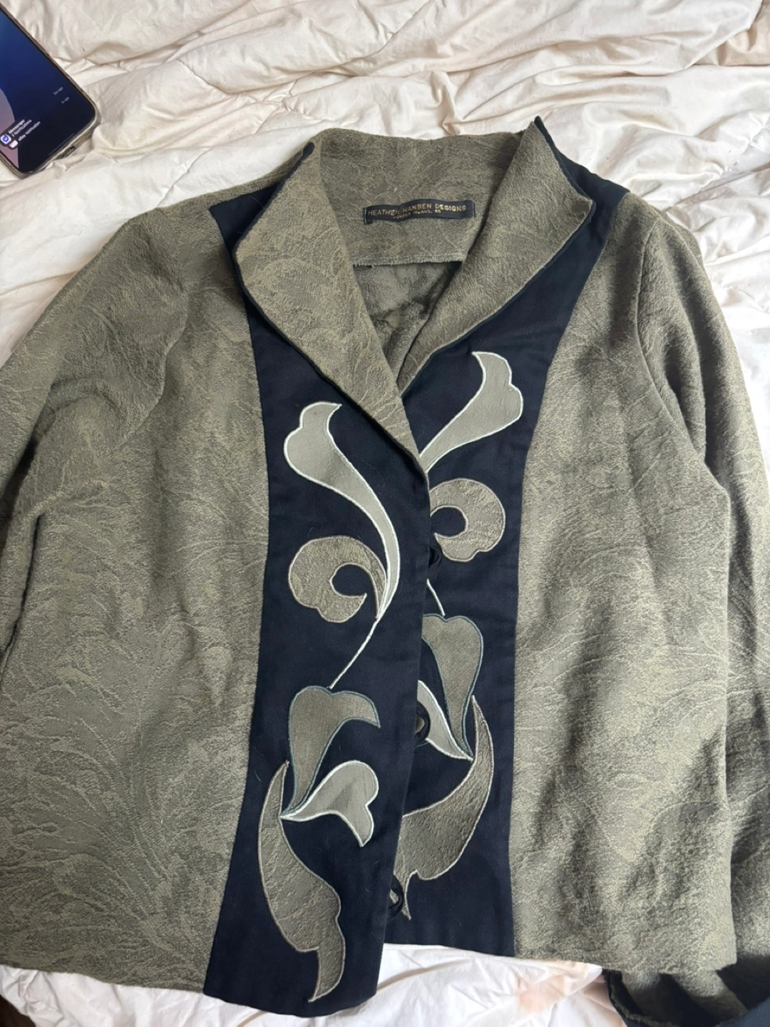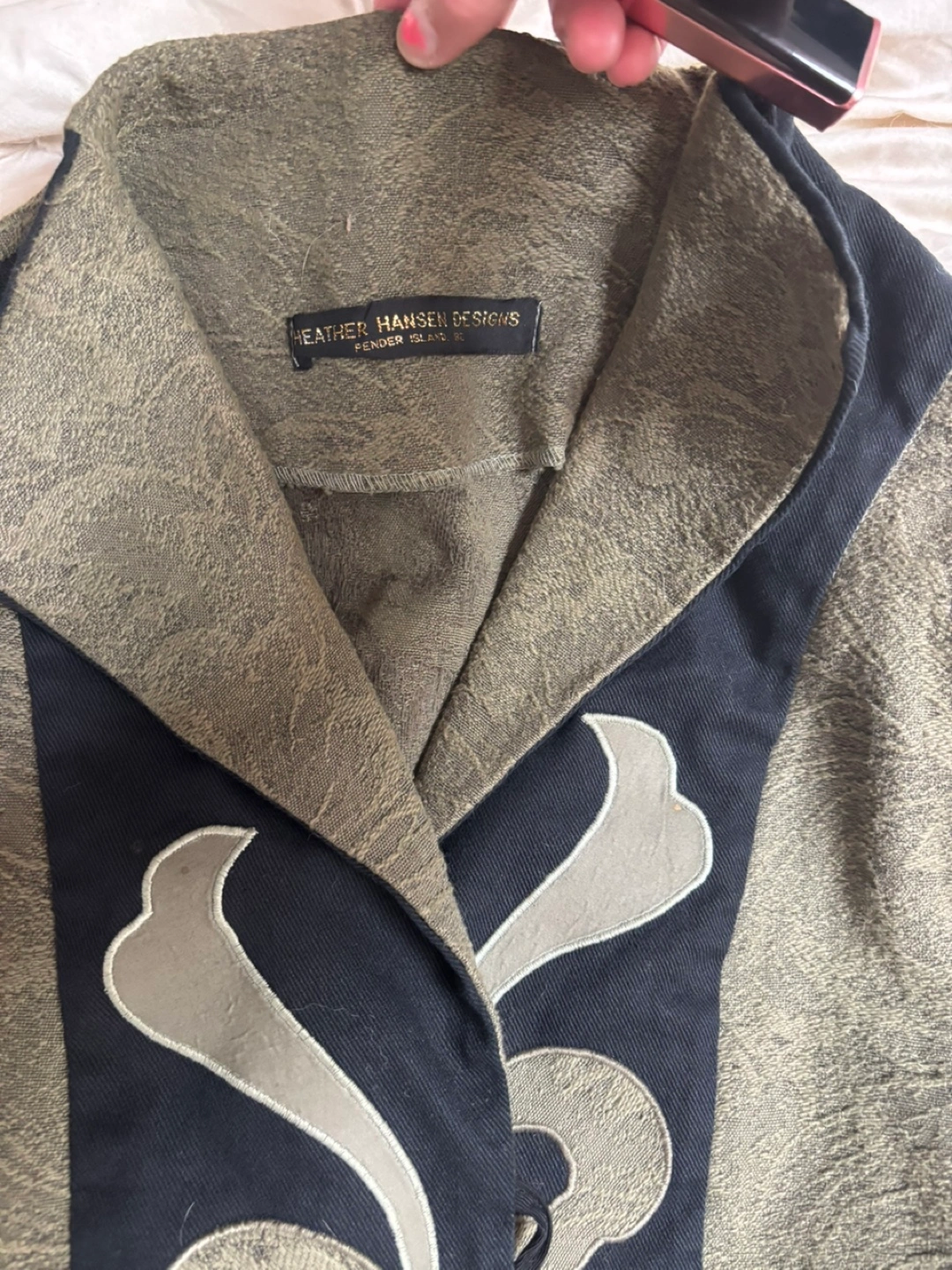 Selling a Heather Hansen Designs jacket. It features a unique design with black and olive green colours. Perfect for adding a touch of style to your wardrobe!