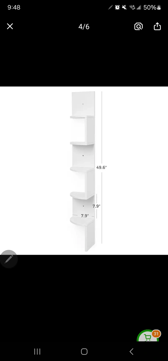Brand new, still in packaging, 5-tier corner shelf! Perfect for adding a bit of storage and style to any room. Comes with all the hardware you need for easy installation
