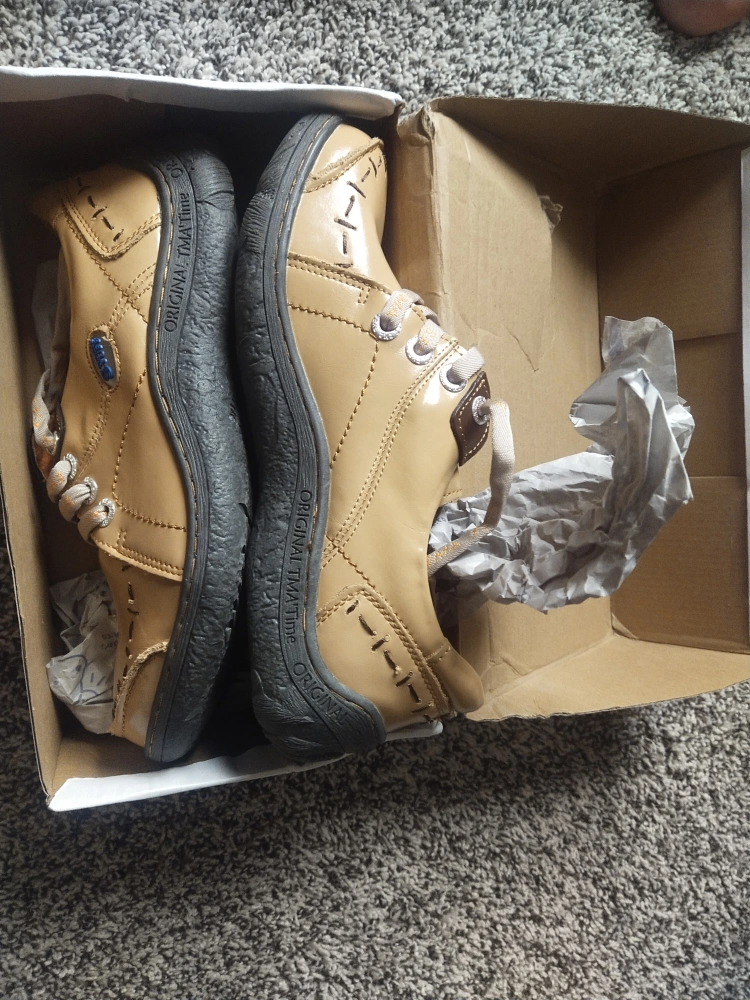 Selling a pair of StumbleStuff shoes in apricot colour! They come with the original box. Made with premium leather, TPR outsoles and premium eyelets. These shoes are all about Stumble Stuff comfort, so you know they'll feel great! NEVER BEEN USE