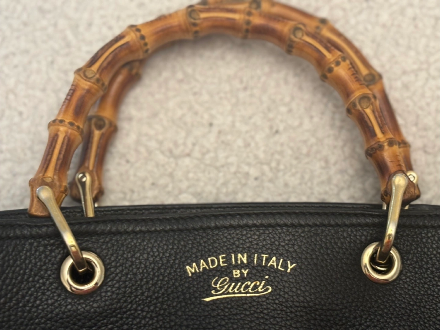 Selling a Gucci tote bag in black leather with the iconic bamboo handles. It's in great condition and ready for a new home! The gold-tone hardware adds a touch of elegance to this classic piece. Perfect for everyday use or special occasions. đź’ŻAuthenticity.
