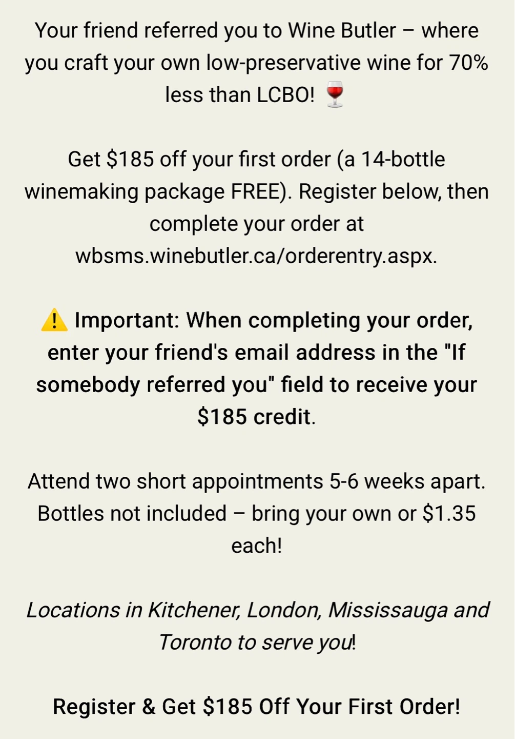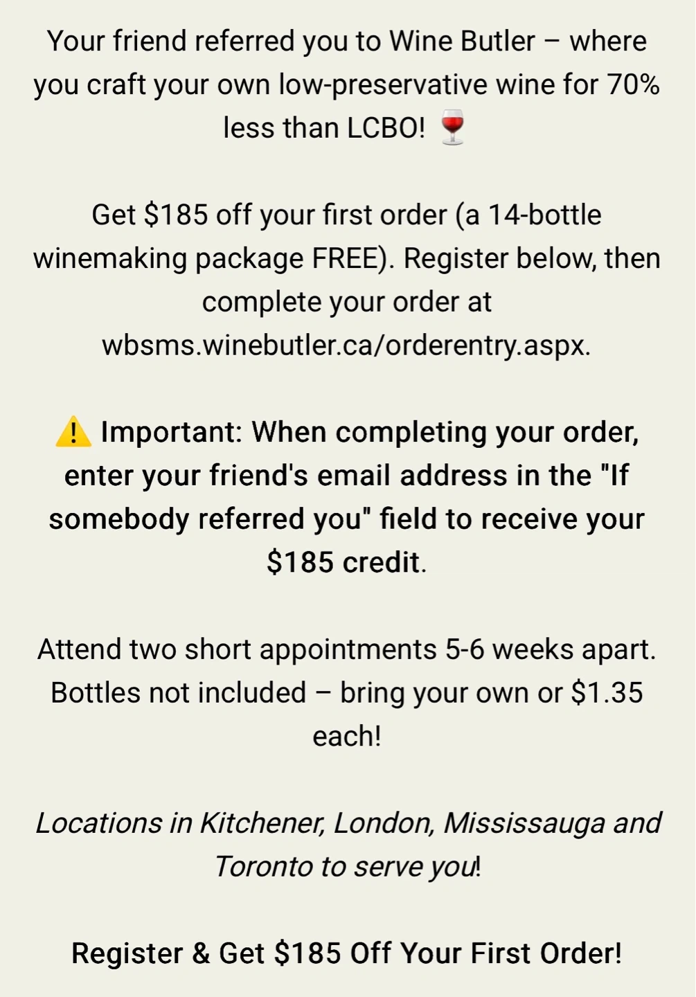 To claim your 14 FREE bottles of wine from The Wine Butler use this link: https://wine-butler.referral-factory.com/u6ZTO149