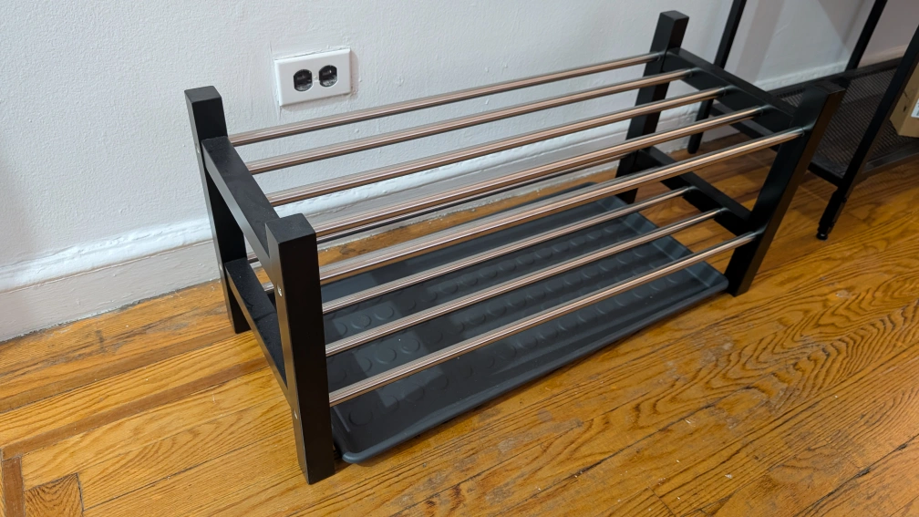 I'm selling a sturdy black metal shoe rack! It's the Tjusig model from Ikea. It is made of black wood with metal bars. A grey tray to collect water/mud tray is included. Retails for 30+ USD. I had it for just a year and it has no signs of use. Pickup in Greenwich Village.