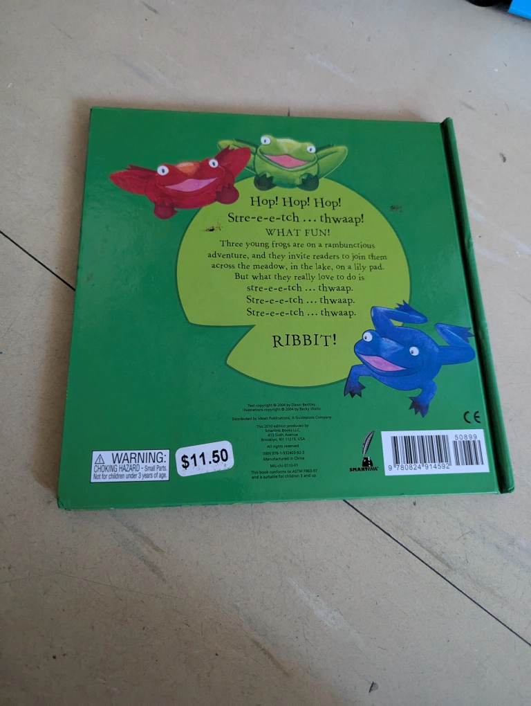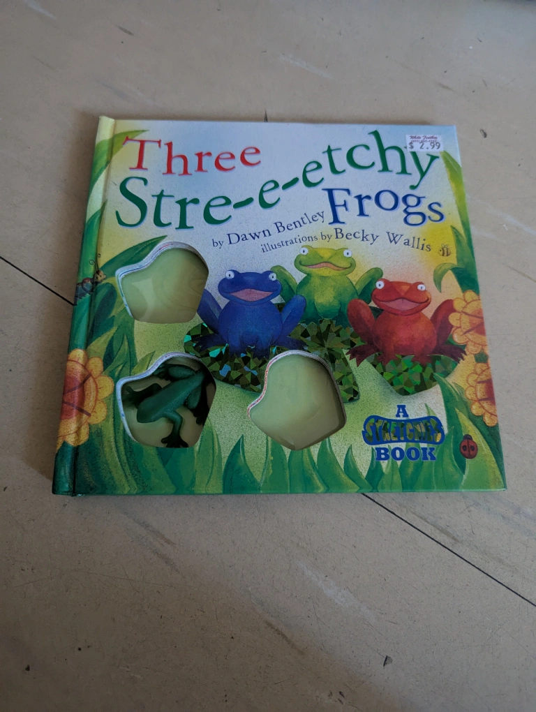 Three Stretchy Frogs by Dawn Bentley is a fun book for kids! It invites readers to join three young frogs on a rambunctious adventure across the meadow and into the lake on a lily pad