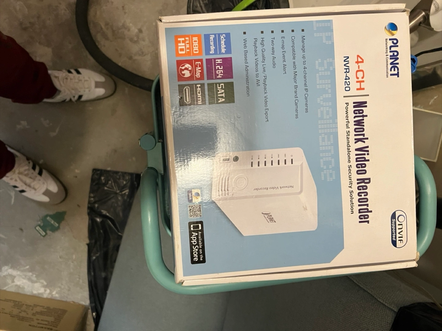 43Selling a Planet 4-CH Network Video Recorder, model NVR-420. It's a powerful standalone security solution for managing up to 4-channel IP cameras and is compatible with major brand cameras. Key features include: - E-Map and Audio - Two-way Audio - High Quality Live/Playback Video Export - Playback Videos to AVI - Web Based Administration It supports schedule recording and H.264 SATA. The box is included!