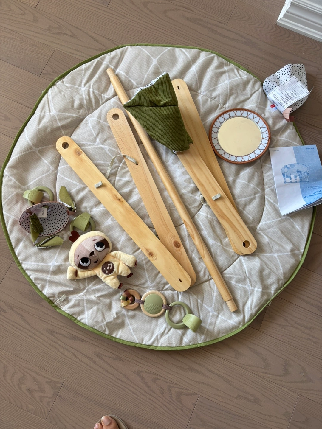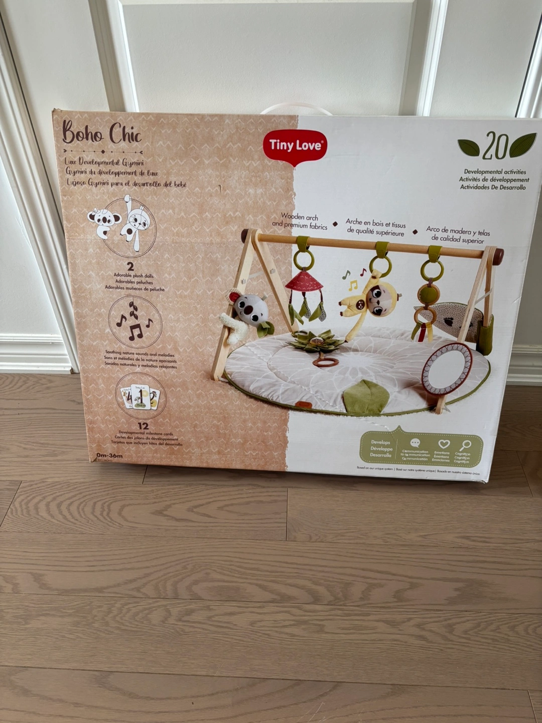 Selling a Tiny Love Boho Chic developmental gym in great condition! It includes a wooden arch with premium fabrics and 20 developmental activities. Recommended for babies aged 0-36 months. Comes with adorable plush dolls and stimulating nature sounds and melodies for your little one