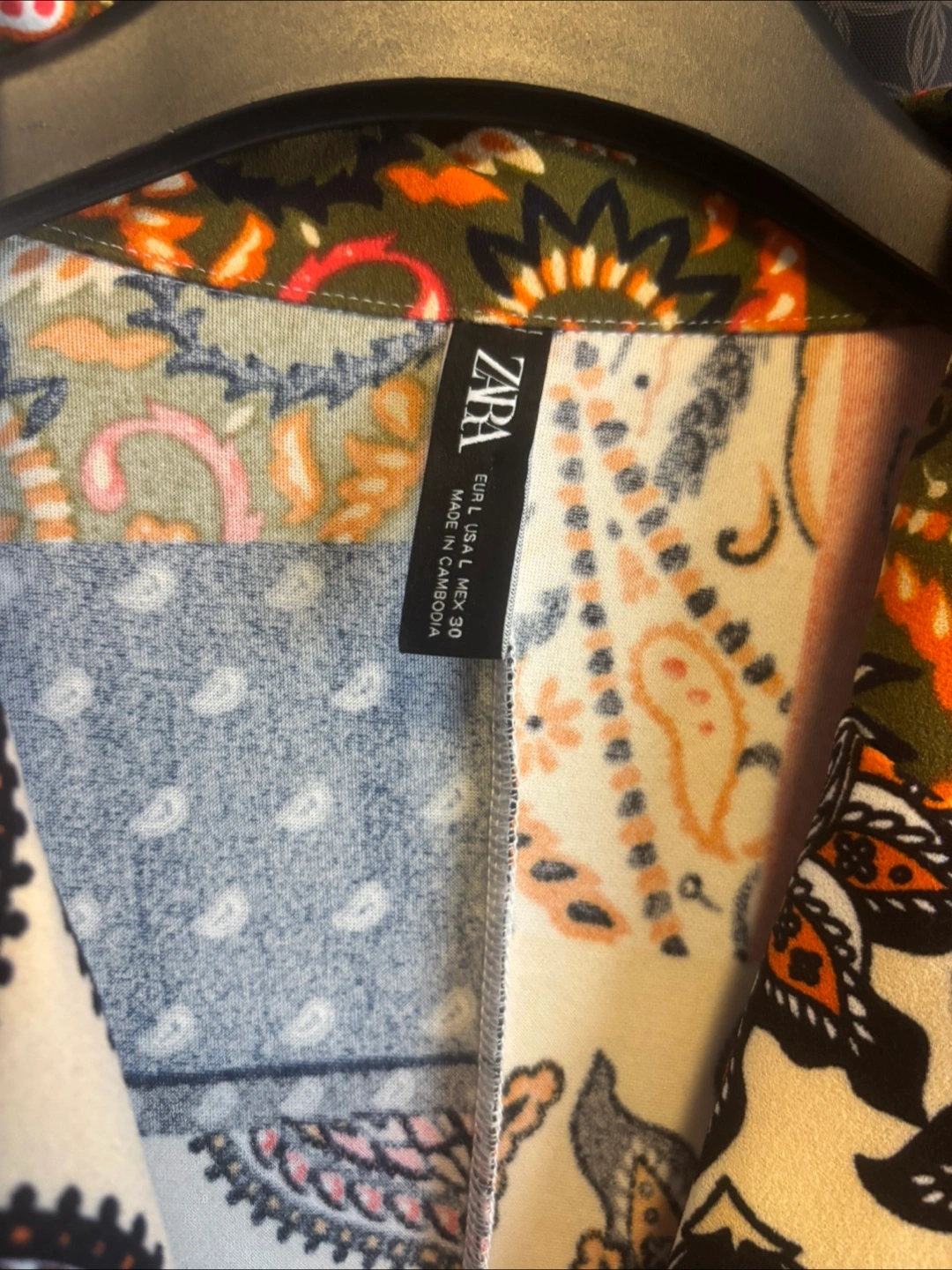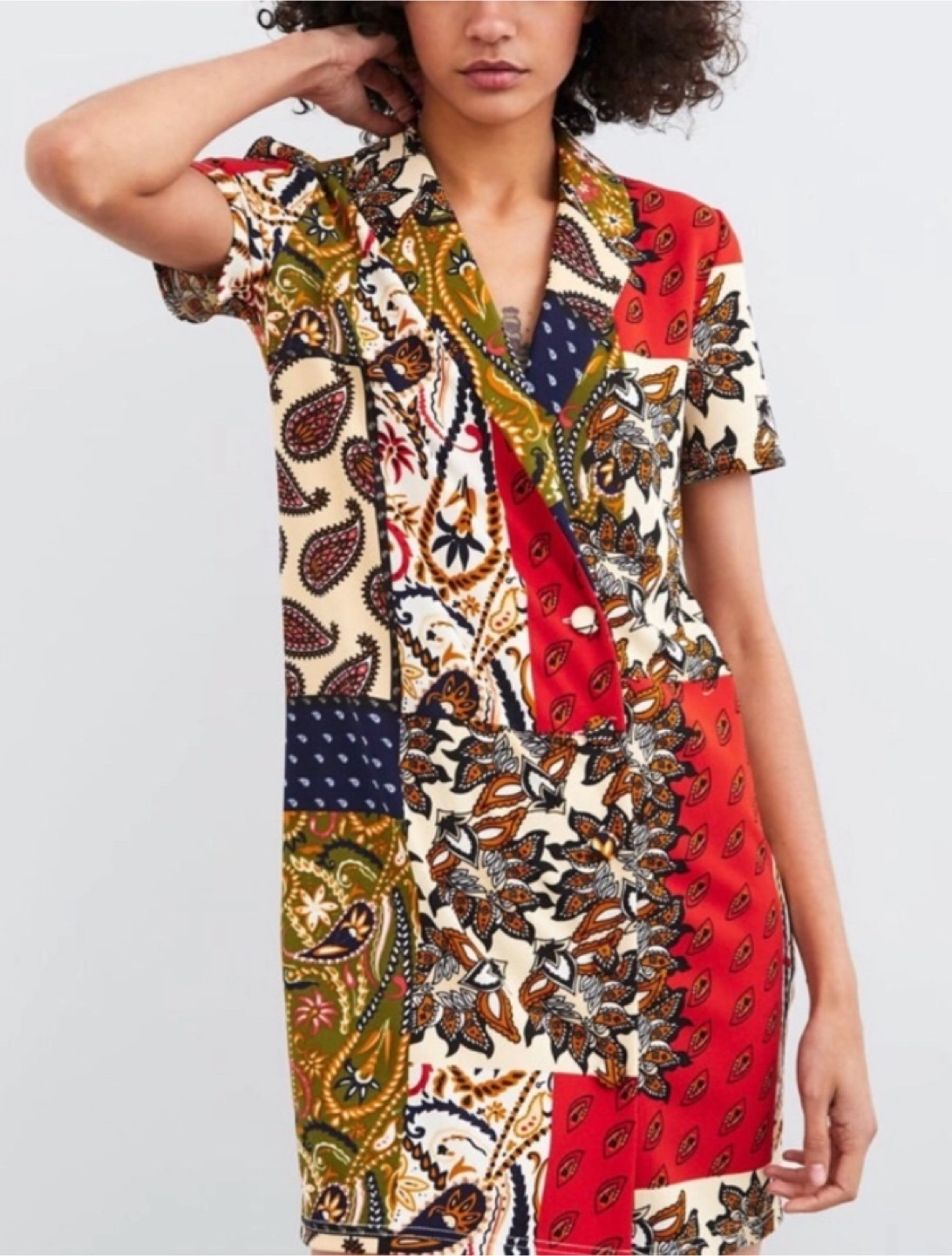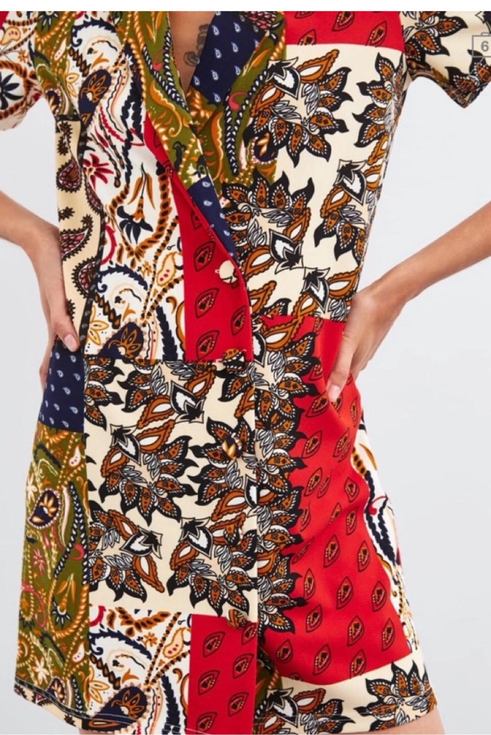 Cute Zara mini dress with a fun patchwork print! The size is L (EUR/USA/L MEX 30). It's in great condition and ready for a new home!