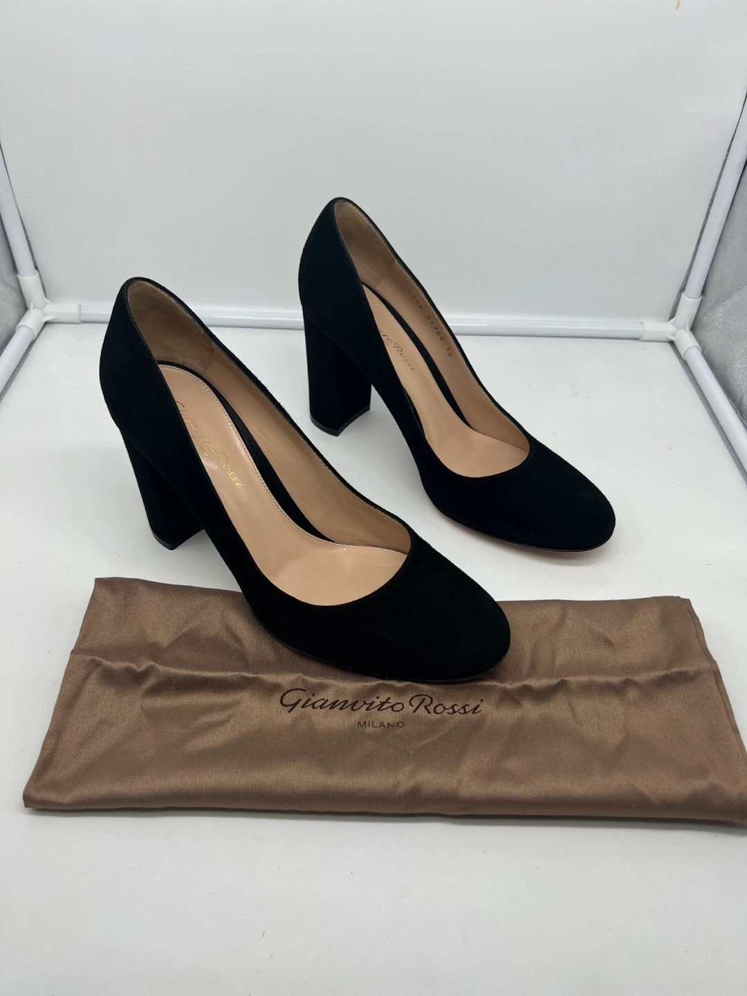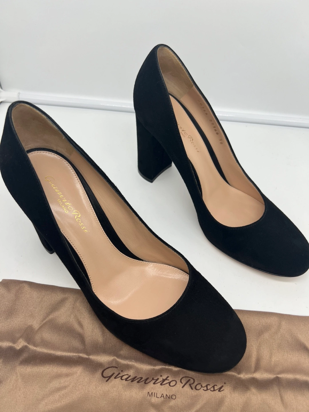 Gianvito Rossi Linda Mid Black Suede Pumps sz 38