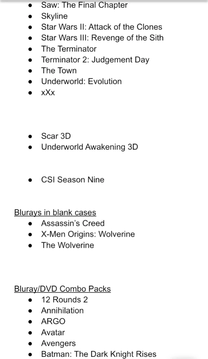 I have a bunch of blurays that I’m looking to trade for ones I’m going to use.