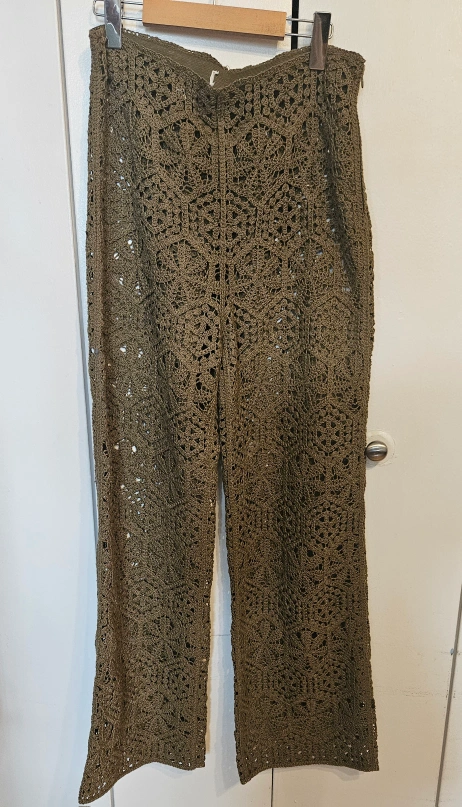 1000+These are a pair of crochet wide-leg pants in olive green. They're in great condition and would be a stylish addition to your wardrobe! worn once, from H&M