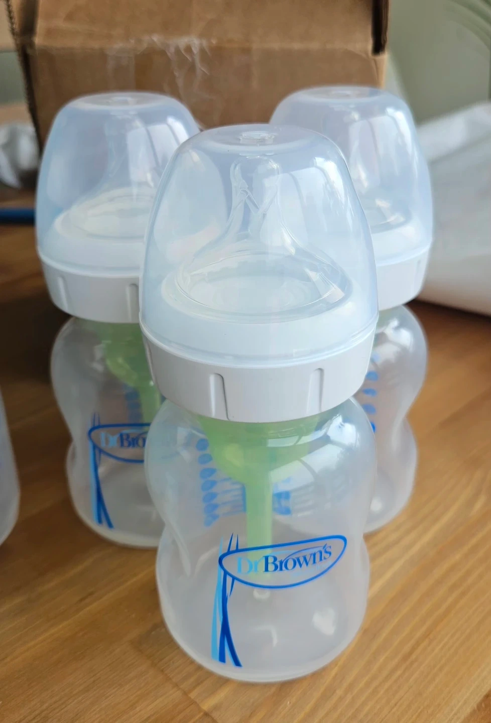 One of the baby bottles I can highly recommend is Dr. Brown’s. It’s excellent—babies don’t get stomach pain or gas at all.