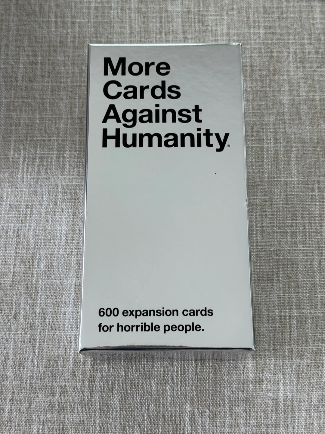 Selling an empty ‘More Cards Against Humanity' expansion box! It's in great condition and can hold 600 expansion cards, not included.