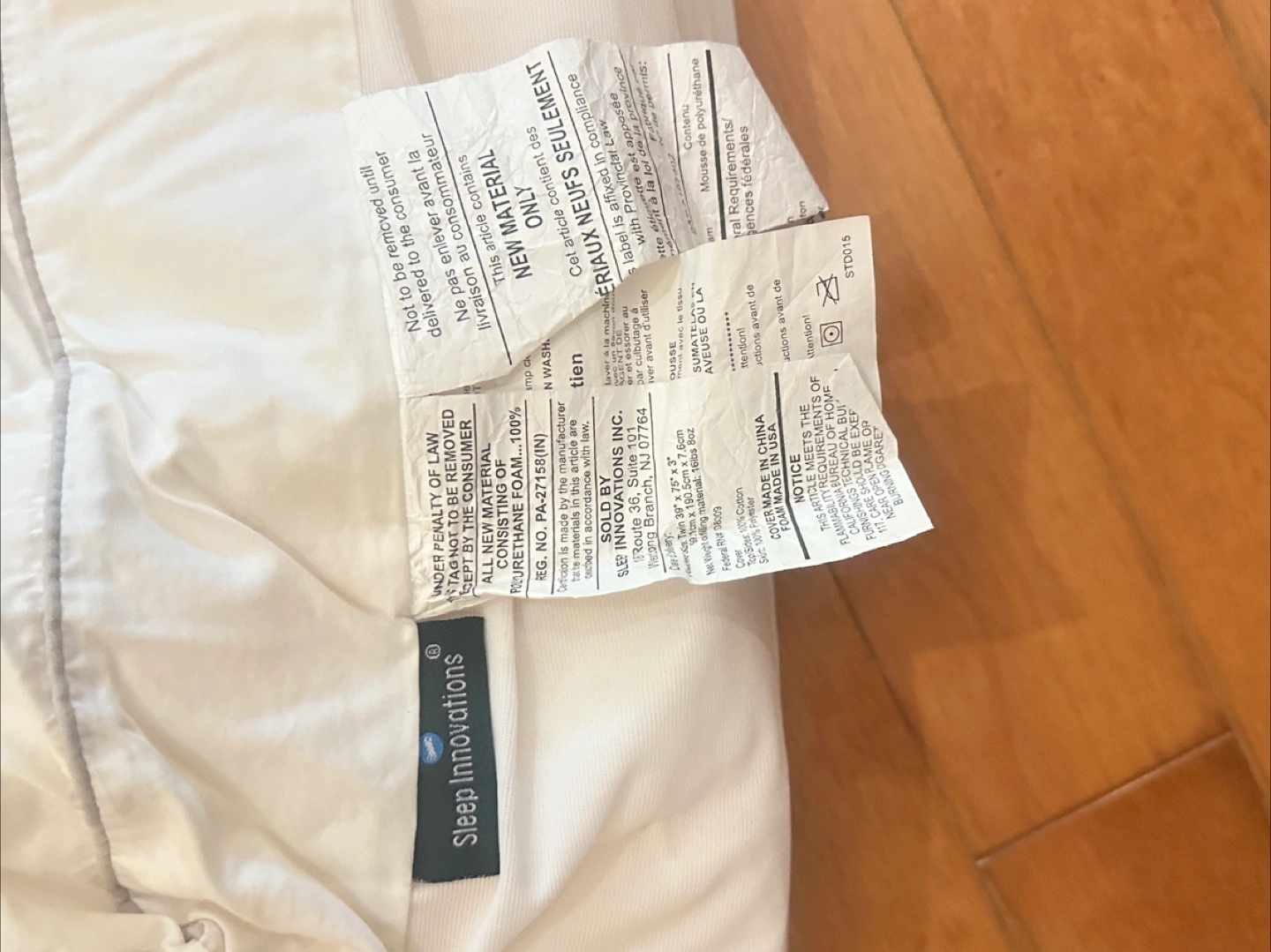 Selling a Sleep Innovations mattress topper, made with 100% polyurethane foam. It's a great way to add some extra comfort to your bed!