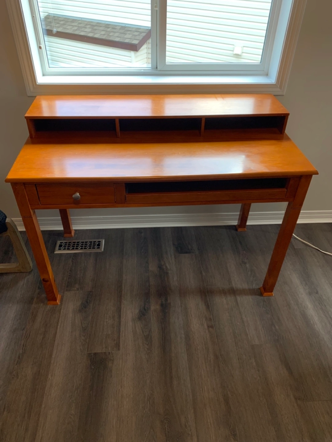Great little desk from Pier One. Some nicks and scratches but still in excellent overall condition.