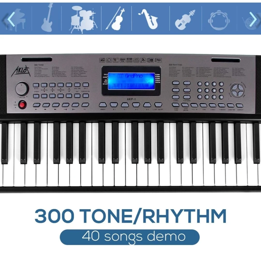 Selling an Aklot AKP-I keyboard in great condition! It features 61 standard-size keys and 300 different tones and rhythms to explore